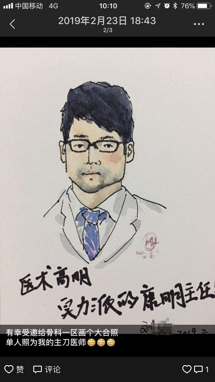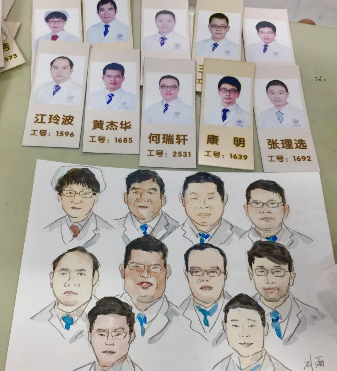 很快,一幅以康明医生为原型的水彩版“工作照”出炉了!这惟妙惟肖的作品,让刚好到他床旁做护理的护士惊叹不已:“画得太像了,你真有心!”