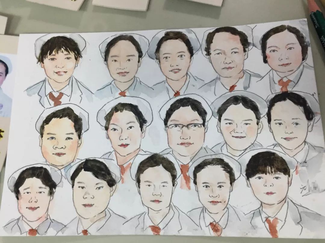 刘先生见大家喜欢,便在病床上用一个下午的时间,为骨科一区的医生和护士们画了一幅“全家福”,医护们接过这份礼物都惊喜不已,纷纷直言这是第一次有患者为自己“量身定制”地作画,既别出心裁又有意义。
