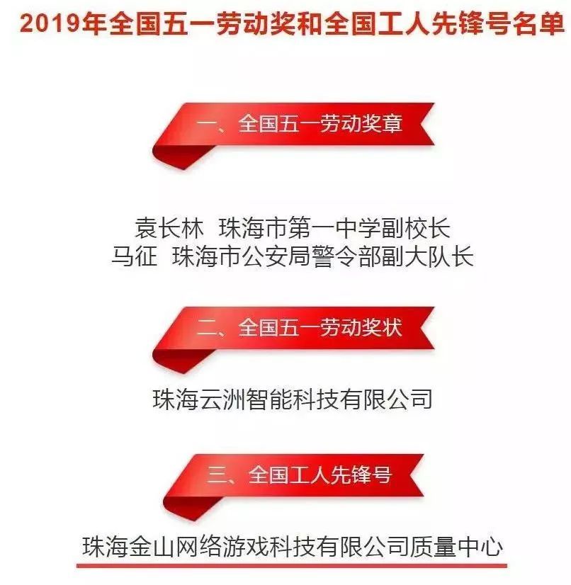 金山网游质量中心荣获2019年全国工人先锋号!