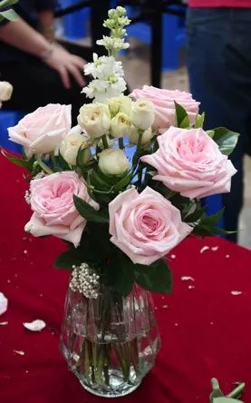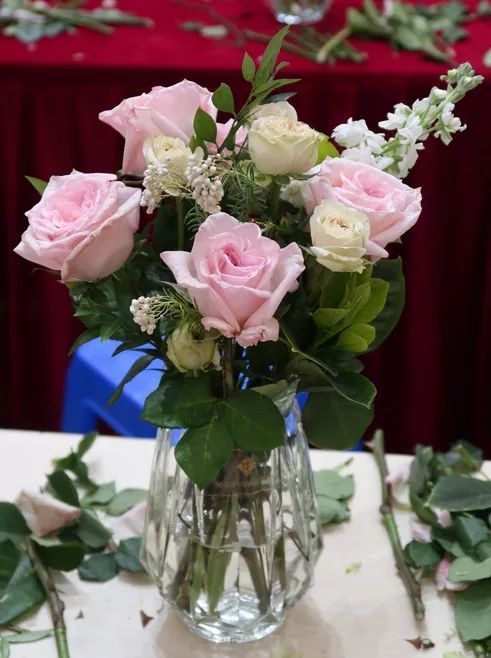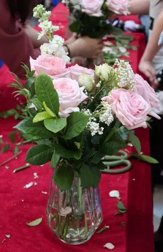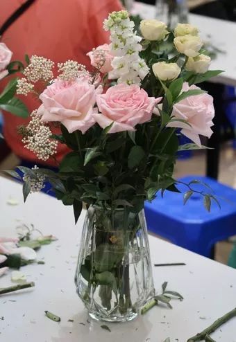 易莎莎老师与大家分享花艺,为介绍本期活动所用到的花材,鲜花的选购以及保鲜常识,作品介绍、色彩配搭插花技巧及示范。