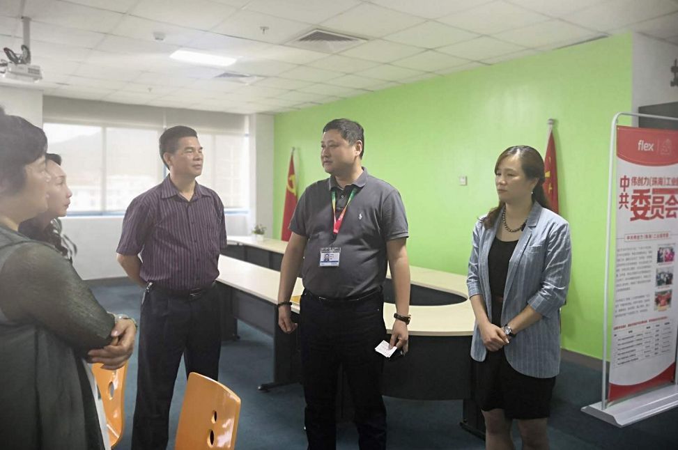 区总工会一行首先来到伟创力工业园,详细了解园区工会开展的工匠评选、困难职工帮扶、爱心妈妈小屋、阅读会、合唱团等项目的建设情况。