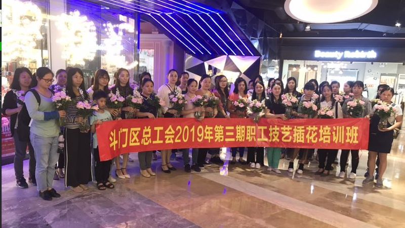 为深入贯彻党的十九大和中国工会十七大精神,全面提升职工的综合素质,顺应职工对美好生活的新期待,丰富职工的业余文化生活,区总工会于4月21日在大信新都汇(斗门店)负一楼中庭开展了第三期职工技艺插花培训班。
