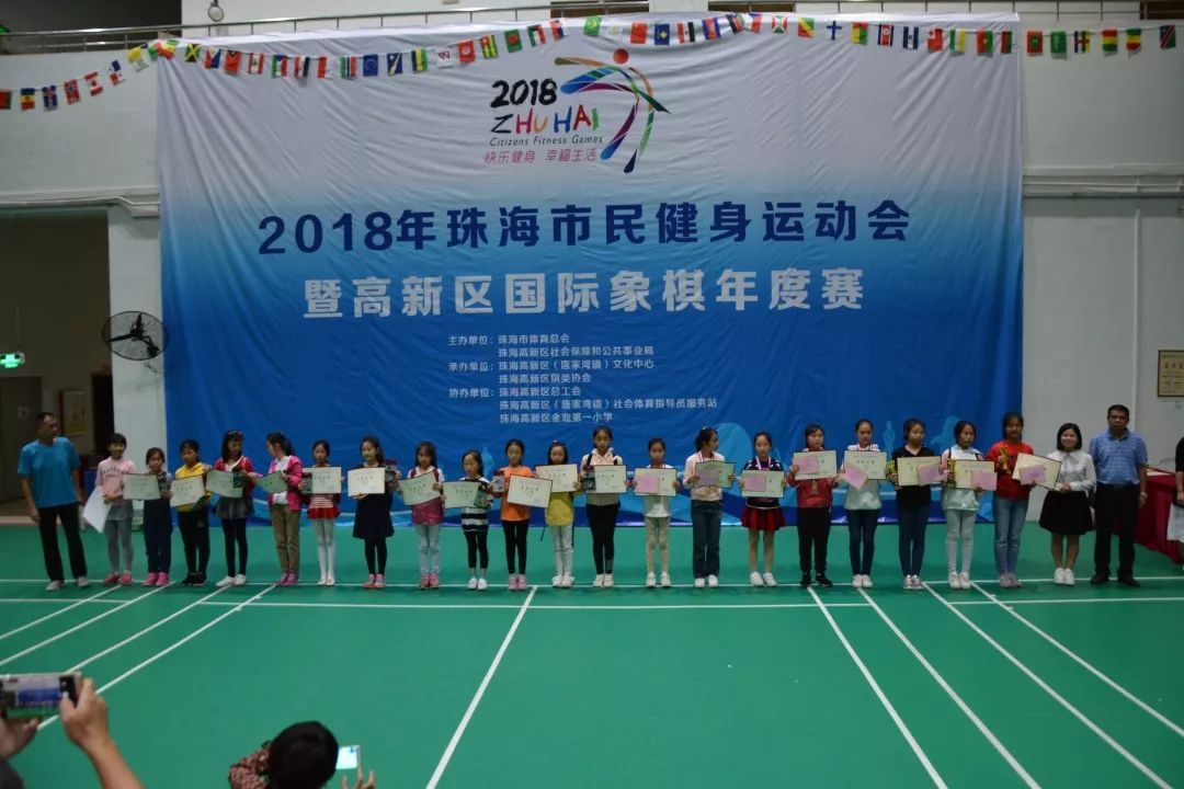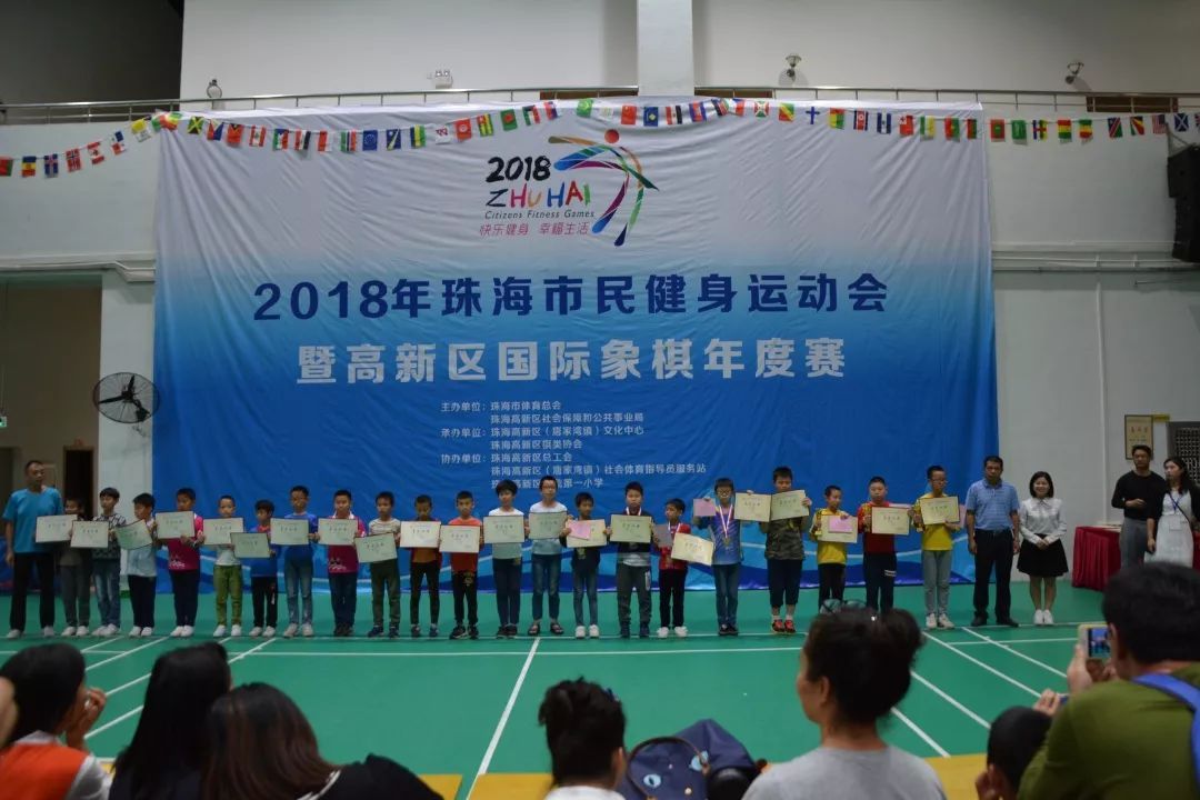 2018年12月2日,2018年珠海市民健身运动会暨高新区国际象棋年度赛在珠海高新区金鼎第一小学体育馆圆满闭幕,来自珠海市各学校、企事业单位、社区组织共53支代表队近400名棋手参赛。