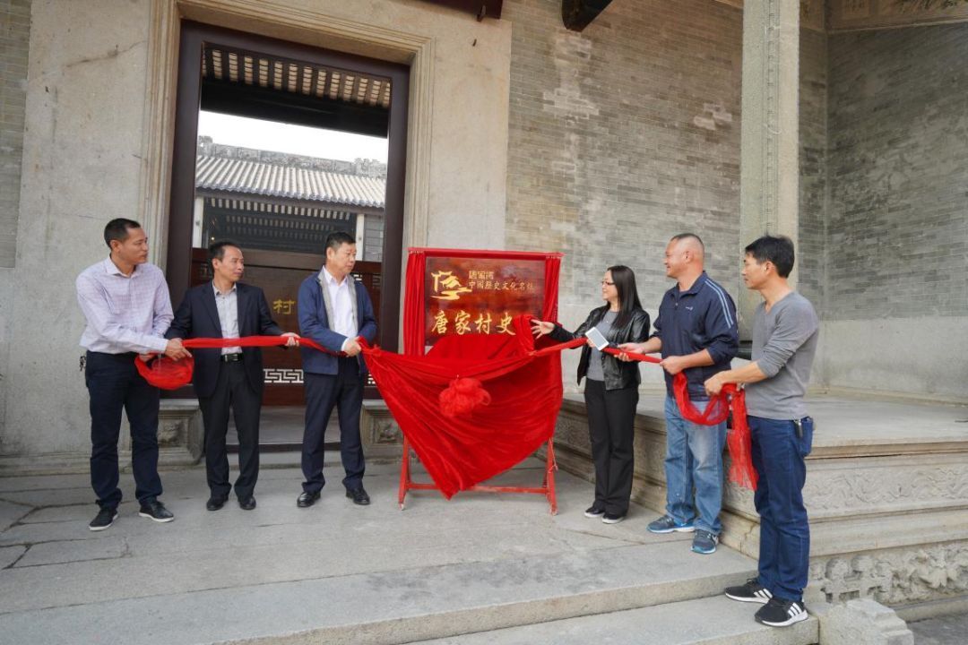 区管委会副主任周火根,区社会事业局负责人曾秋丽,唐家湾镇镇委书记、镇长蓝璋,区社会事业局副局长张勇,唐家社区书记、主任李海南,唐乐社区书记、主任许招谐为唐家村史馆揭牌。