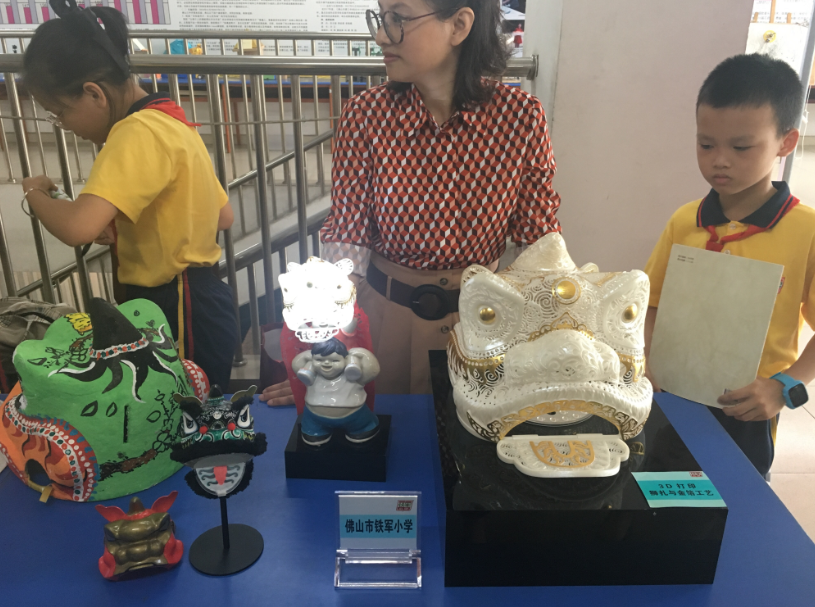 从单一的狮头到衍生品再到结合现代工艺的3D打印,佛山市铁军小学在传统狮扎的基础上插上了创意的翅膀。非遗传承人、佛山市铁军小学美术教师欧琦辉结合传统的狮扎结构建模,用3D打印重现+非遗传承金箔技艺,跨界合作实践给佛山非遗传承和创新创客教育发展开拓了全新的思路。