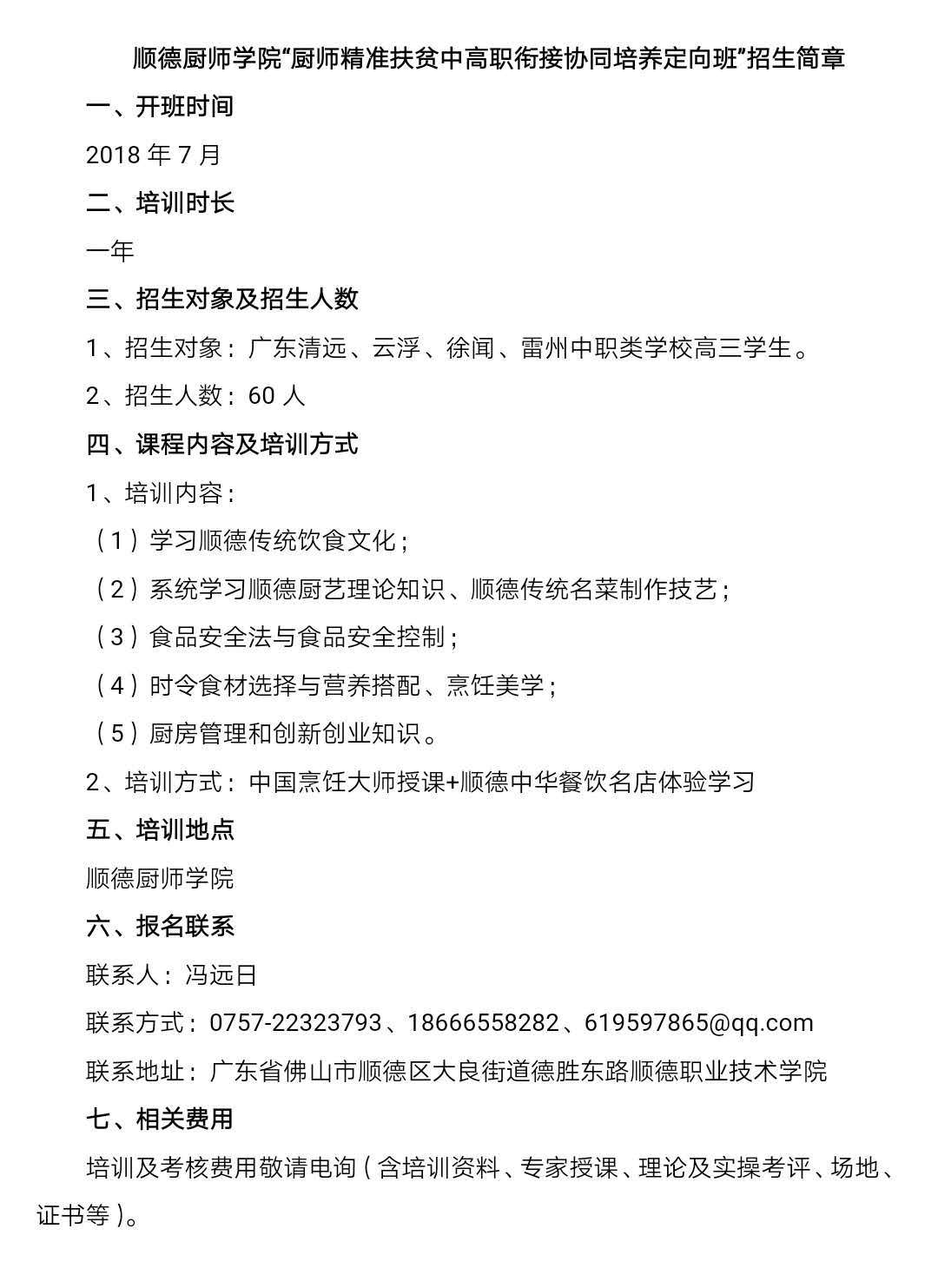 值得关注的是,今年5月,佛山市委常委、宣传部长、顺德区委书记、顺德职业技术学院党委书记郭文海对“顺德厨师学院”建设提出两个要求,首先是依托厨师之乡、美食之都的顺德培养烹饪人才,另一个就是开展社会培训,通过“一人学厨,全家脱贫”,提升精准扶贫工作有效开展。当天揭幕仪式上他指出,顺德厨师学院要为对口帮扶地区培养厨师,让它们最终实现“乡村振兴”。