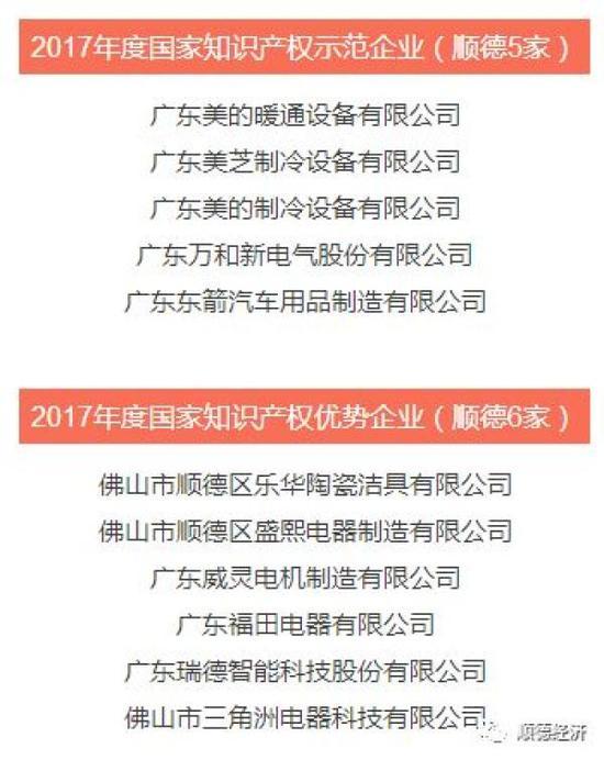 此外,2017年,顺德新增了5家国家知识产权示范企业和6家国家知识产权优势企业。当年顺德新增国家专利奖14项,其中外观设计金奖1项,历年累计获国家专利奖62项。