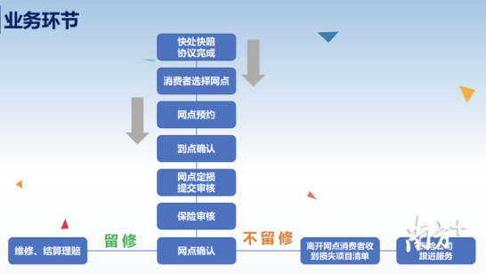 “一旦车主上报了信息,选择好共享理赔服务点,相应的4S店就会收到整个事故的信息,会主动打电话联系车主进行维修的指引、预约。只要车主按预约时间到店,4S店就会准备好资料,能马上进行拆检和定损,即使车主不选择在4S店维修,这些服务都会是免费的。”佛山市保险行业协会权益维护部相关负责人介绍。