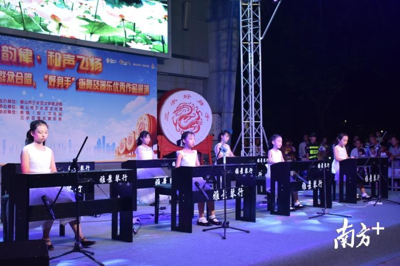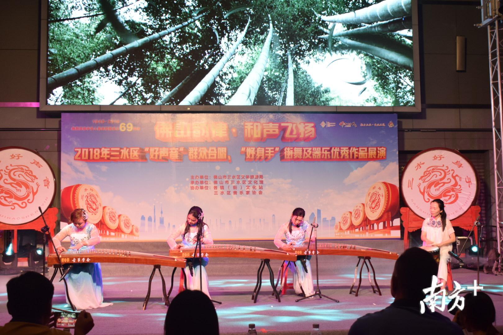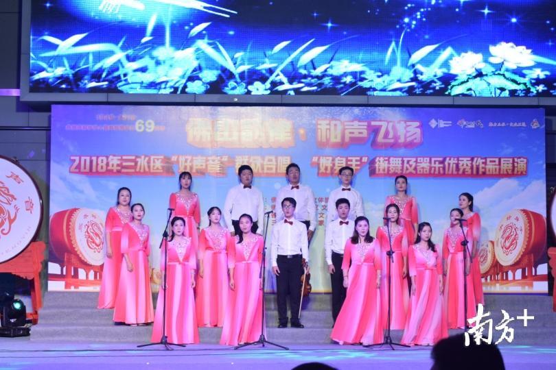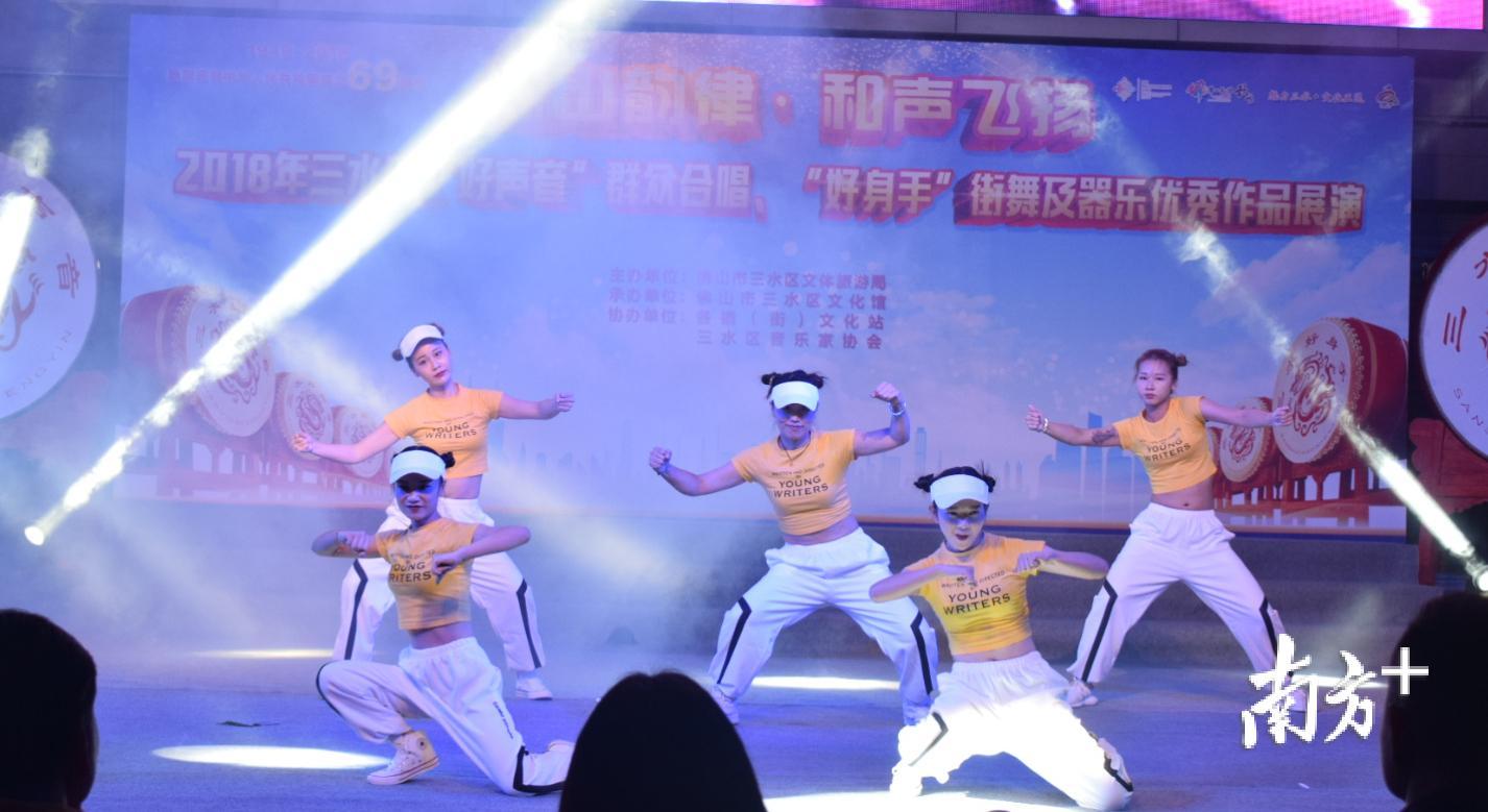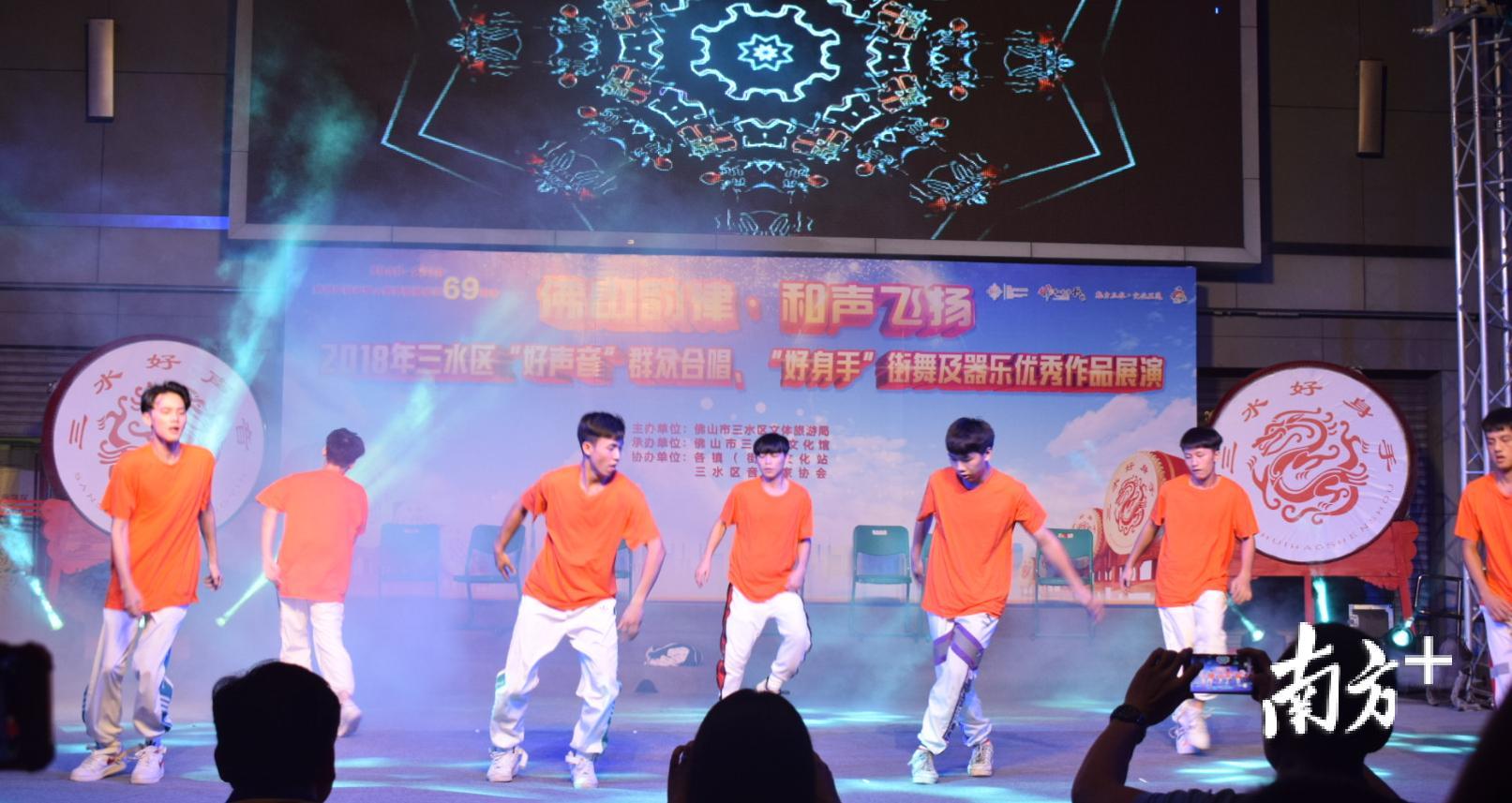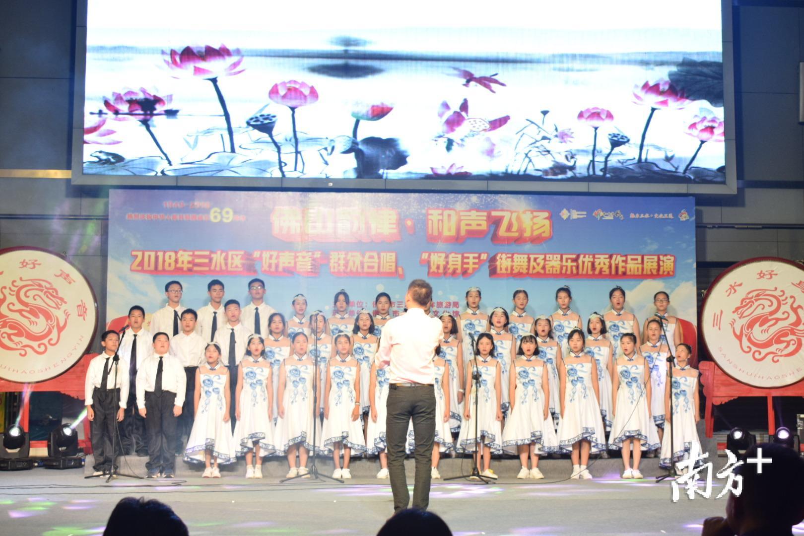 9月29日晚,“佛山韵律·和声飞扬”——2018年三水区“好声音”群众合唱、“好身手”街舞及器乐优秀作品展演活动在三水区文化馆小广场举行,来自各镇街的14支队伍以合唱、街舞、器乐合奏等形式献礼国庆佳节。