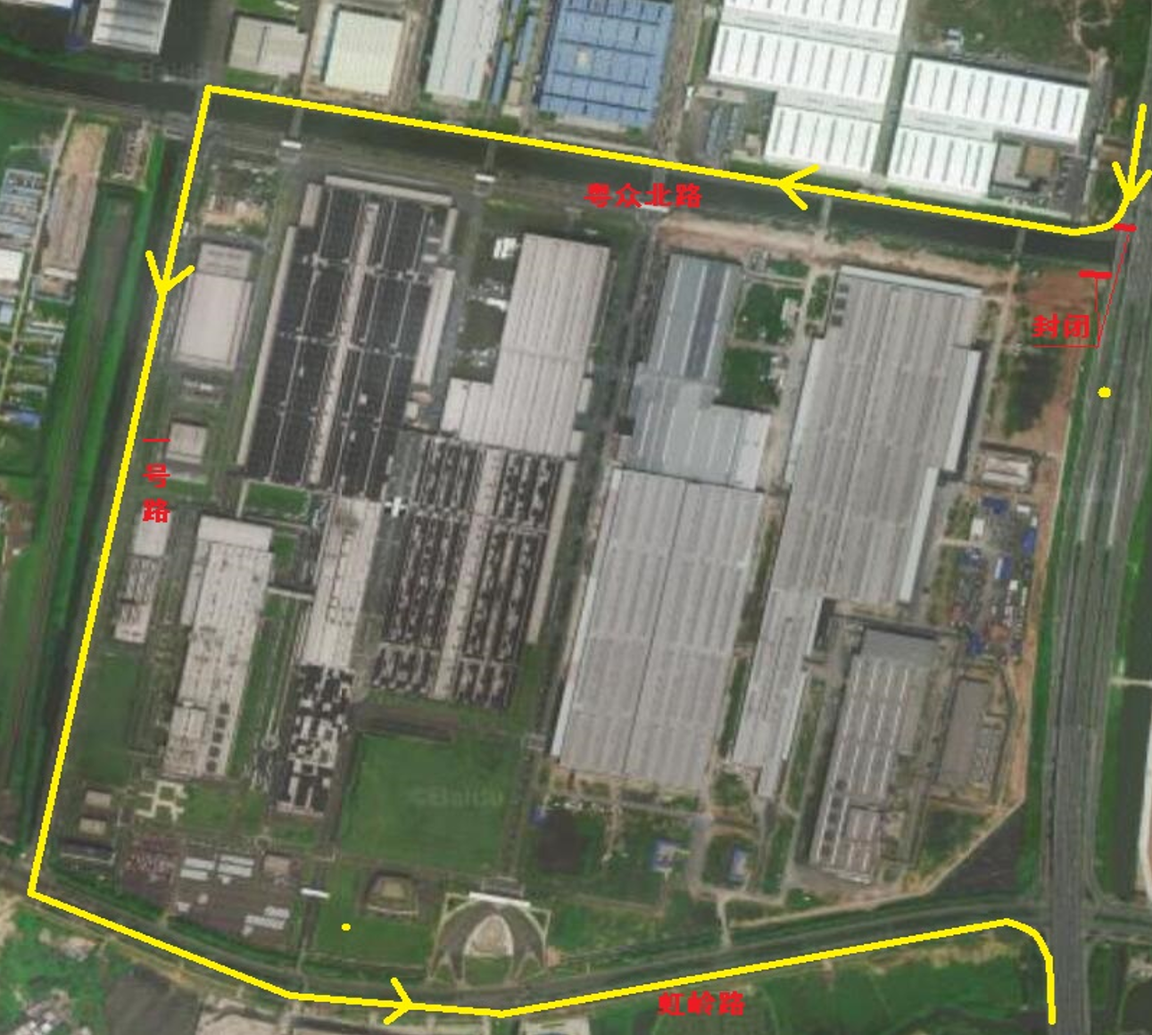 车辆由佛山一环辅道→粤众北路→一号路→虹岭路上佛山一环辅道。