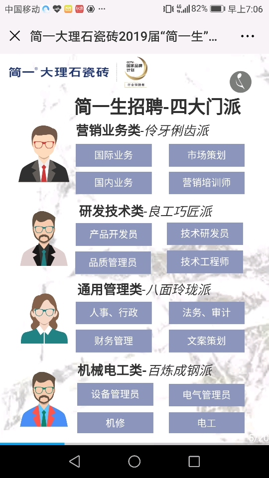 简一生,是简一大理石瓷砖对招聘应届毕业生的统称。简一生的四大门派是: