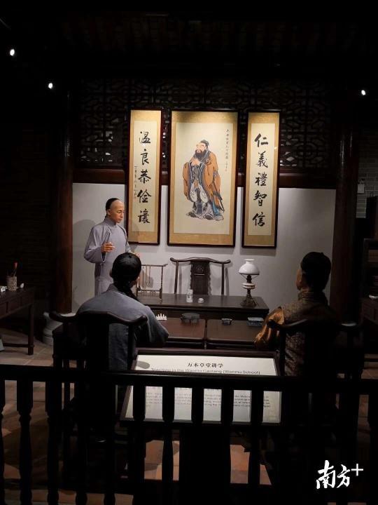 工作人员介绍,馆内设有《康有为生平展》,包含“时代呼唤变革”、“家世及幼年时代”、“修养与讲学时代”、“领导戊戌维新变法运动”、“不懈的追求——康有为在海外”等八部分内容,通过文物陈列、场景模拟、幻影成像、交互式媒介等多种方式,再现康有为的生平经历,彰显了康有为崇高的爱国思想和敢为人先的改革精神。
