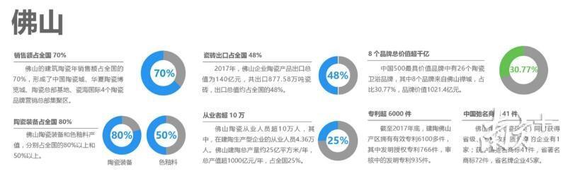 你可能不知道,作为中国最重要的建陶产区,佛山建陶销售额占全国的7成,陶瓷装备产值占全国的8成以上,瓷砖出口总值几乎占据全国的“半壁江山”,仅禅城区排名最靠前的8个陶瓷卫浴品牌,品牌价值就超过千亿元。