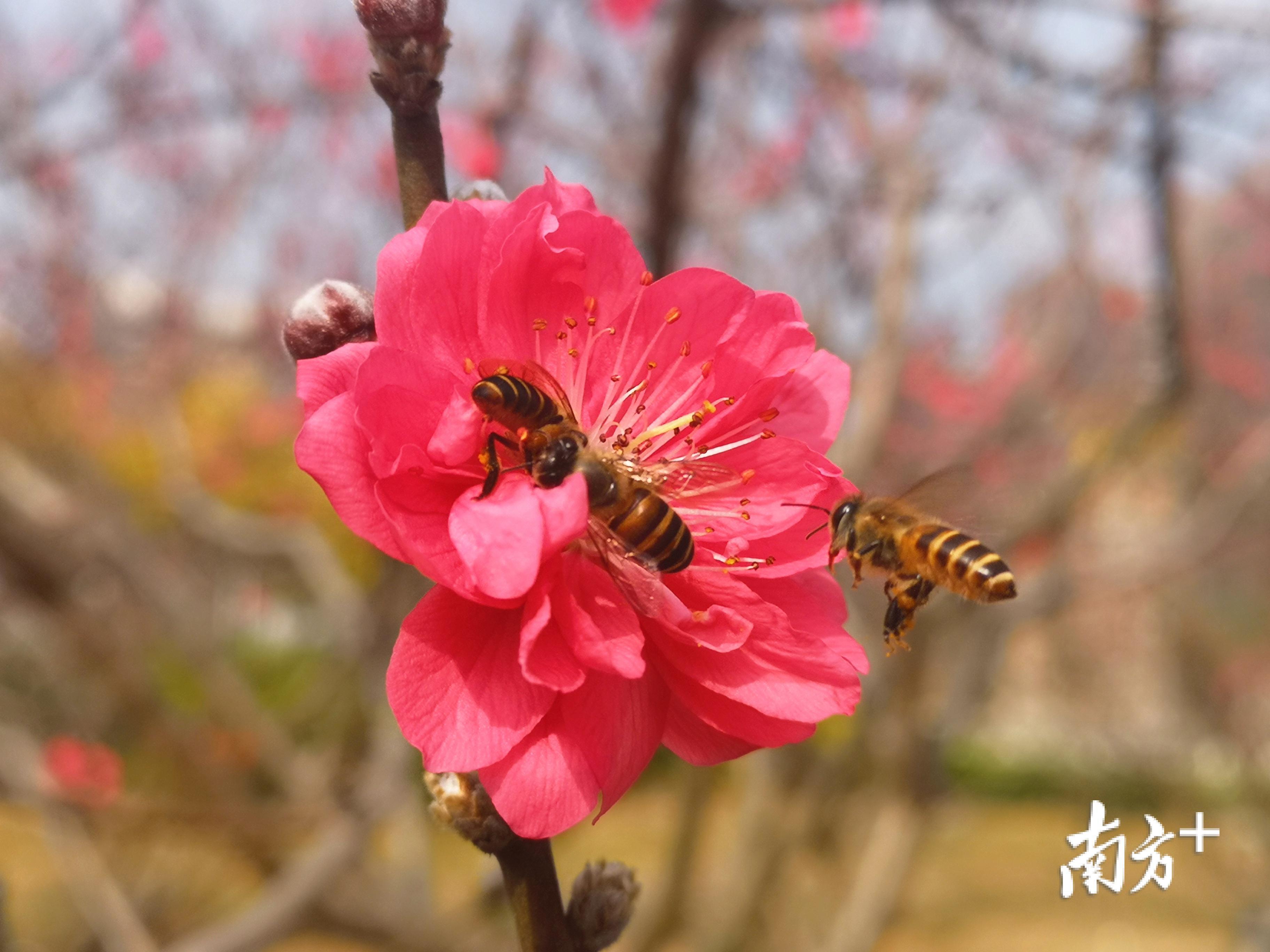 早开的桃花,吐蕊绽放,燃烧一季旖旎,引得蜜蜂也忙把花粉采。