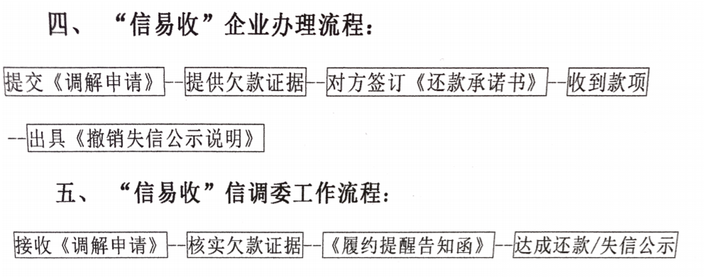 据介绍,“信易收”是人民调解与信用公示创新结合的信用服务产品。这一服务通过专业的第三方介入调解,利用向社会公示信用信息的威慑力引导企业诚信经营,使恶意拖欠货款的矛盾尽量在司法前端处理。