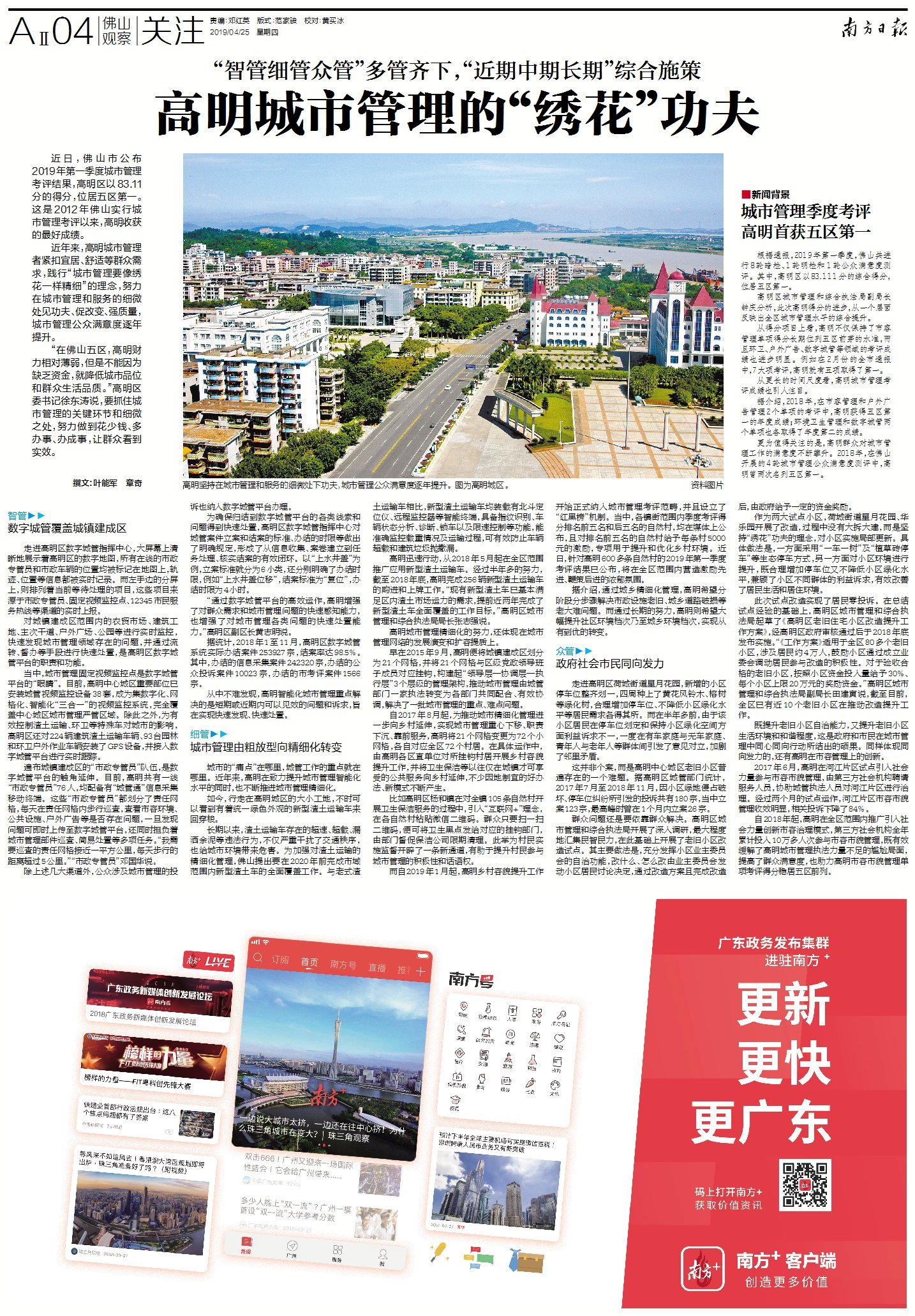 “通过数字城管平台的高效运作,高明增强了对群众需求和城市管理问题的快速感知能力,也增强了对城市管理各类问题的快速处置能力。”高明区副区长黄志明说。
