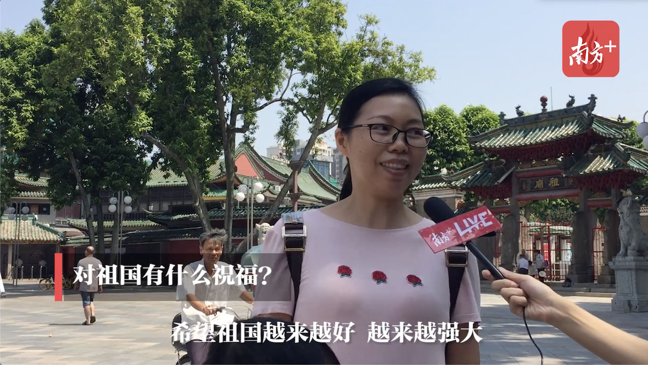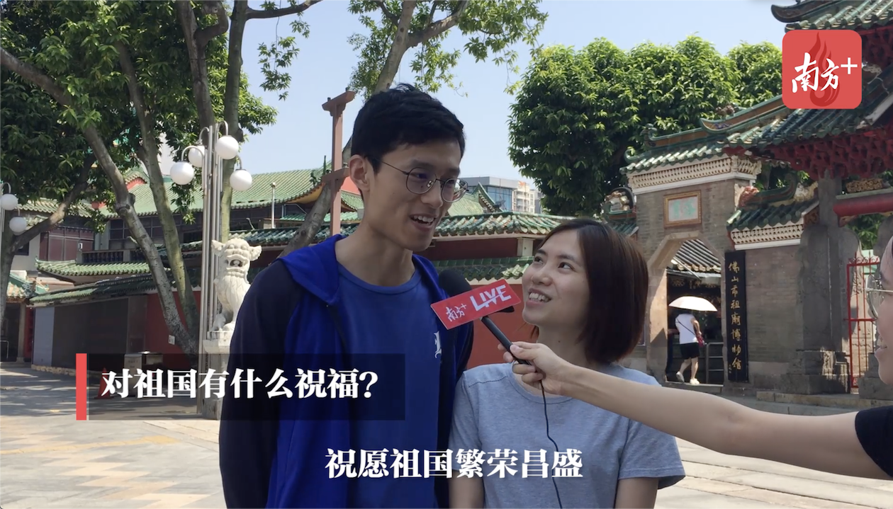 近日,南方+在珠三角九市开展“我为祖国送祝福”活动,选取各个地方的知名景点,收集游客们对祖国的祝福。在佛山祖庙,游客们留下了对祖国的深情告白。