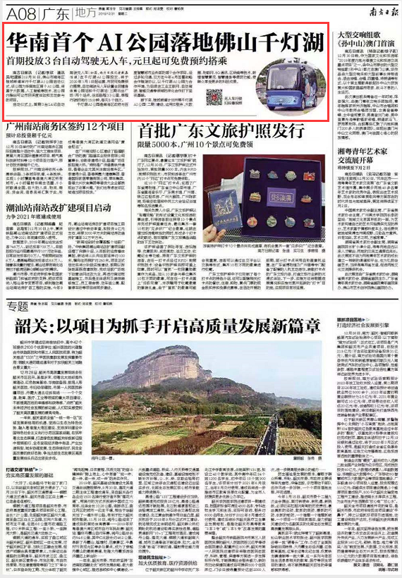 启动仪式上,首期3台L4级自动驾驶无人车在千灯湖AI公园投放,将于2020年1月1日起运营,市民可免费预约搭乘。自动驾驶无人车设置全民健身体育公园站和千灯湖站(三期日出广场)两个站点,往返路程3.3公里,单程行驶时间约15分钟,每天5个班次。