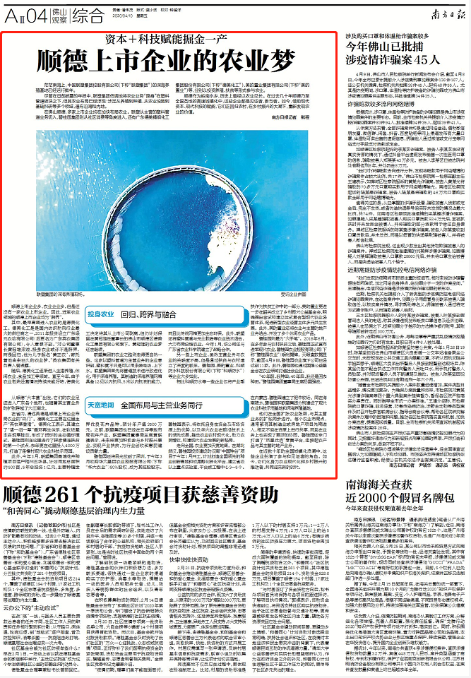 在佛山顺德,多家上市企业均在加快布局农业。联塑从主营的塑料管道业务切入,碧桂园集团则从社区消费等角度进入,还有广东德美精细化工集团股份有限公司(下称“德美化工”)、美的置业集团有限公司(下称“美的置业”)等,分别以投资养殖、扶贫等形式参与农业。
