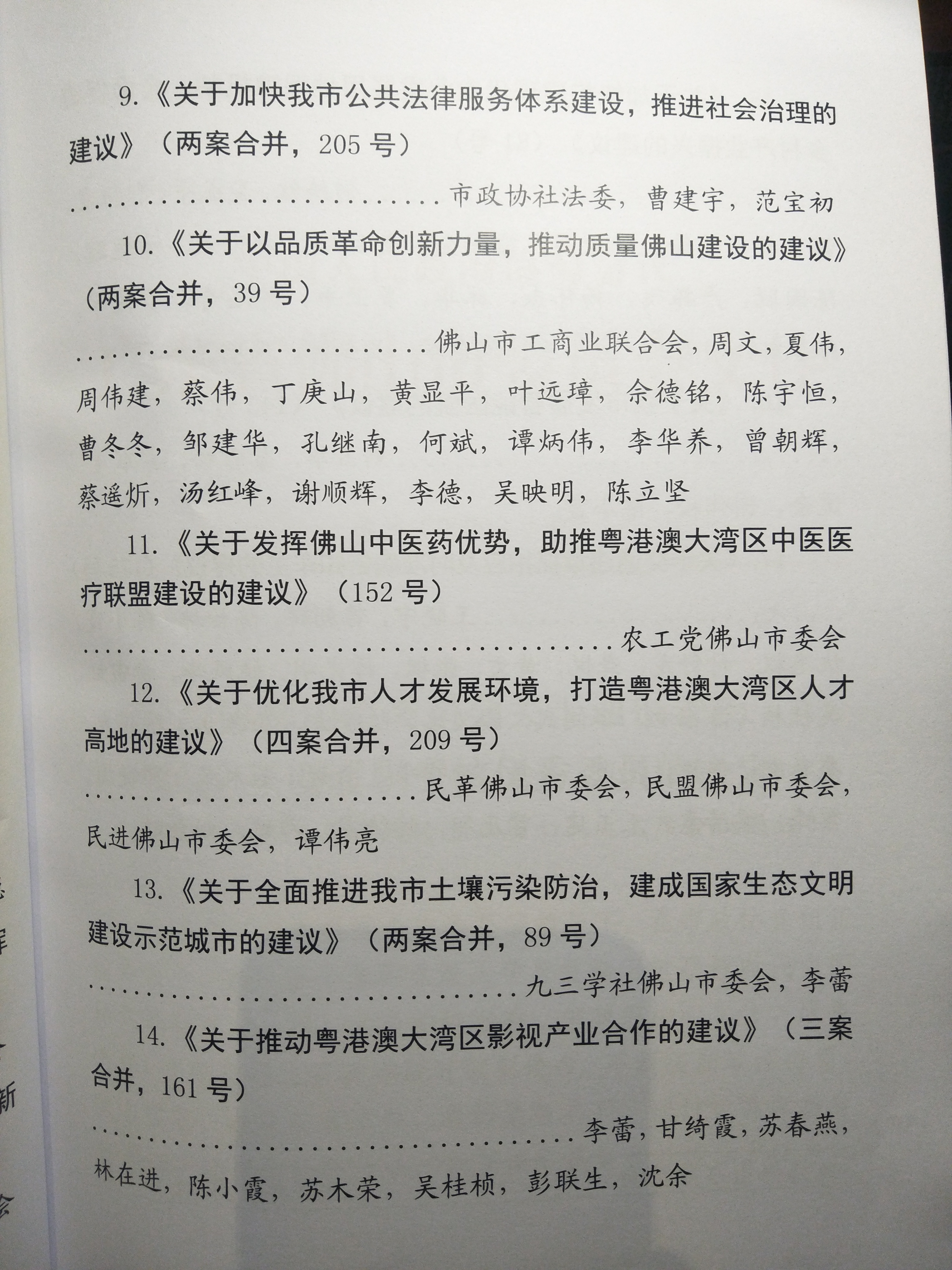 为助推粤港澳大湾区建设,去年,佛山政协围绕高效富有竟争力的制度供给、推进基础设施互联互通、全面落实“香港+佛山”“澳门+佛山”机制、做好广佛同城化大文章等,提出相关提案26件,占立案提案总数8.9%,为佛山协同广州成为粤港澳大湾区建设极点、引领粵港澳大湾区建设富有活力和国际竞争力的一流湾区和世界级城市群贡献佛山智慧和力量。