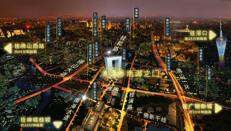 着眼佛山全市,从项目走佛山大道可以到达佛山机场、佛山火车站、以及禅城祖庙商圈、以及岭南站,连接五区。放眼城市群,广佛双城便捷生活圈由此打开。项目南边就是广佛路,素有“广佛黄金走廊”之称,它串起38个专业市场,每年创造近7000亿元交易额。经由周边路网,能便捷通达天河珠江新城天河体育中心、广州塔、广州越秀荔湾老城区等繁华CBD。