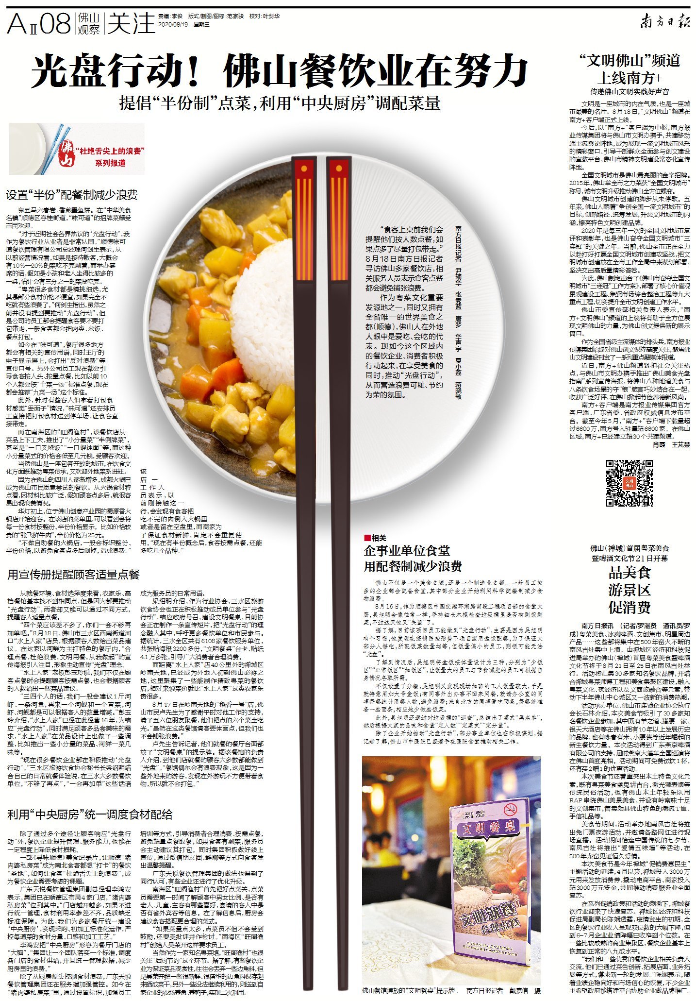 作为粤菜文化重要发源地之一,同时又拥有全省唯一的世界美食之都(顺德),佛山人在外地人眼中是爱吃、会吃的代表。现如今这个区域内的餐饮企业、消费者积极行动起来,在享受美食的同时,推动“光盘行动”,从而营造浪费可耻、节约为荣的氛围。