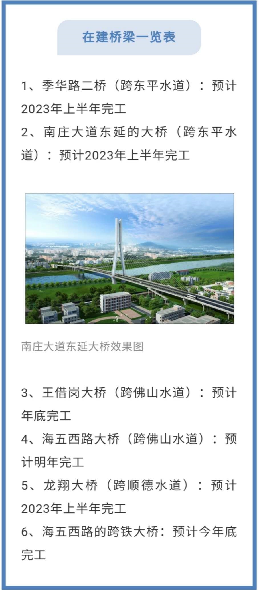 王志扬表示,市、区两级交通部门实施了多条跨河跨铁桥梁建设,目前禅城区在建的大桥共有6座。