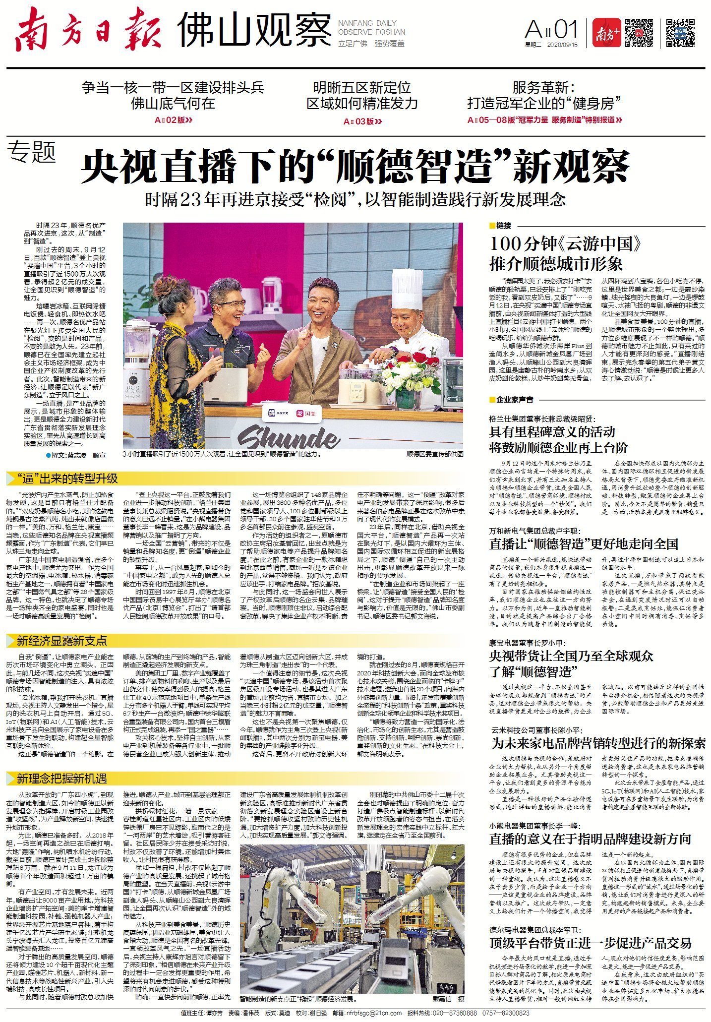 直播是一个新兴渠道,能快速带动商品的销量,我们本身很重视直播这一渠道。借助央视这一平台,“顺德智造”有了更好的亮相机会。
