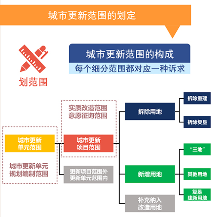 佛山的城市更新范围,包括城市更新项目、城市更新单元两个层次。其中,城市更新项目分为拆除重建项目和微改造项目;城市更新单元可包含一个或多个城市更新项目。