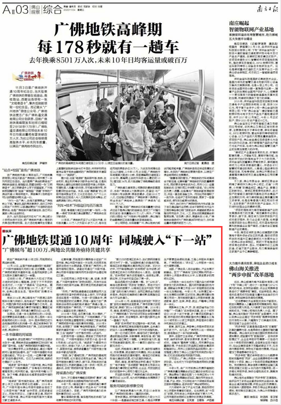 以广佛地铁贯通为代表,历经10余年发展,广佛同城已取得令人瞩目的成就。