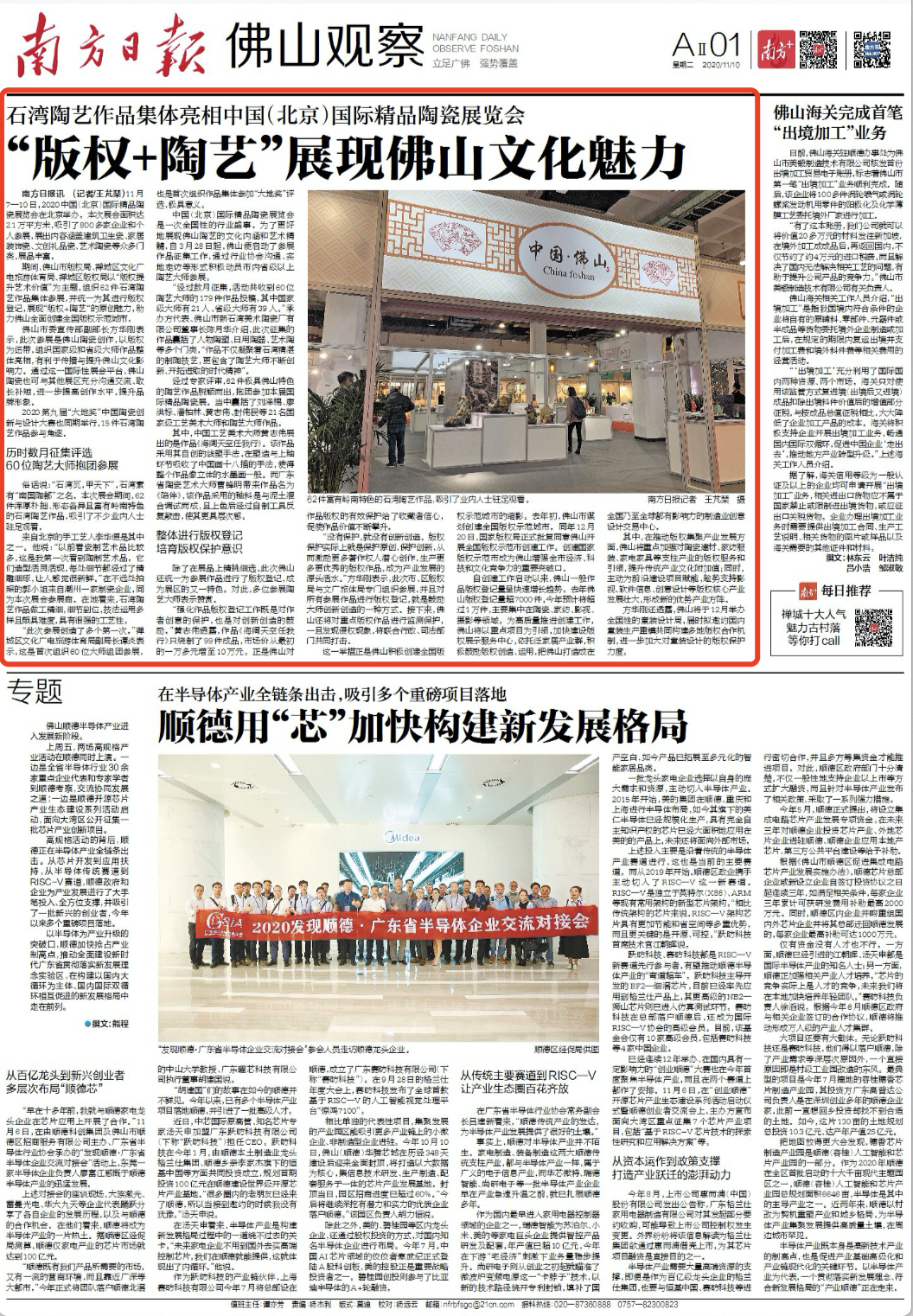 其中,在推动版权集聚产业发展方面,佛山将重点加强对陶瓷建材、家纺服装、家电家具等支柱产业的版权服务和引领,提升传统产业文化附加值;同时,主动为前沿建设项目赋能,趁势支持影视、软件信息、创意设计等版权核心产业发展壮大,形成新的优势产业方阵。