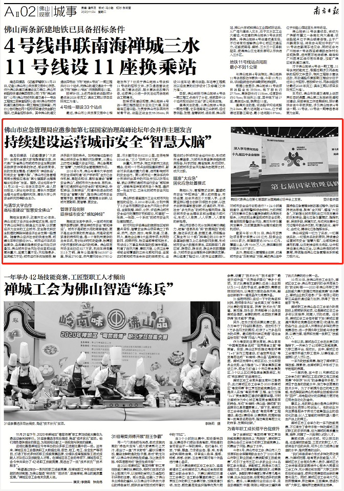 2018年5月,佛山与清华大学在城市安全领域构建“政产学研用”全方位合作机制,高起点规划、高标准建设“智慧安全佛山”,把城市作为生命体、有机体,着力打通城市运行安全的“感知神经、中枢神经、反射神经”,构建平战结合的城市安全“智慧大脑”,推动佛山城市安全管理手段、管理模式、管理理念创新,让城市更聪明、更智慧、更安全。
