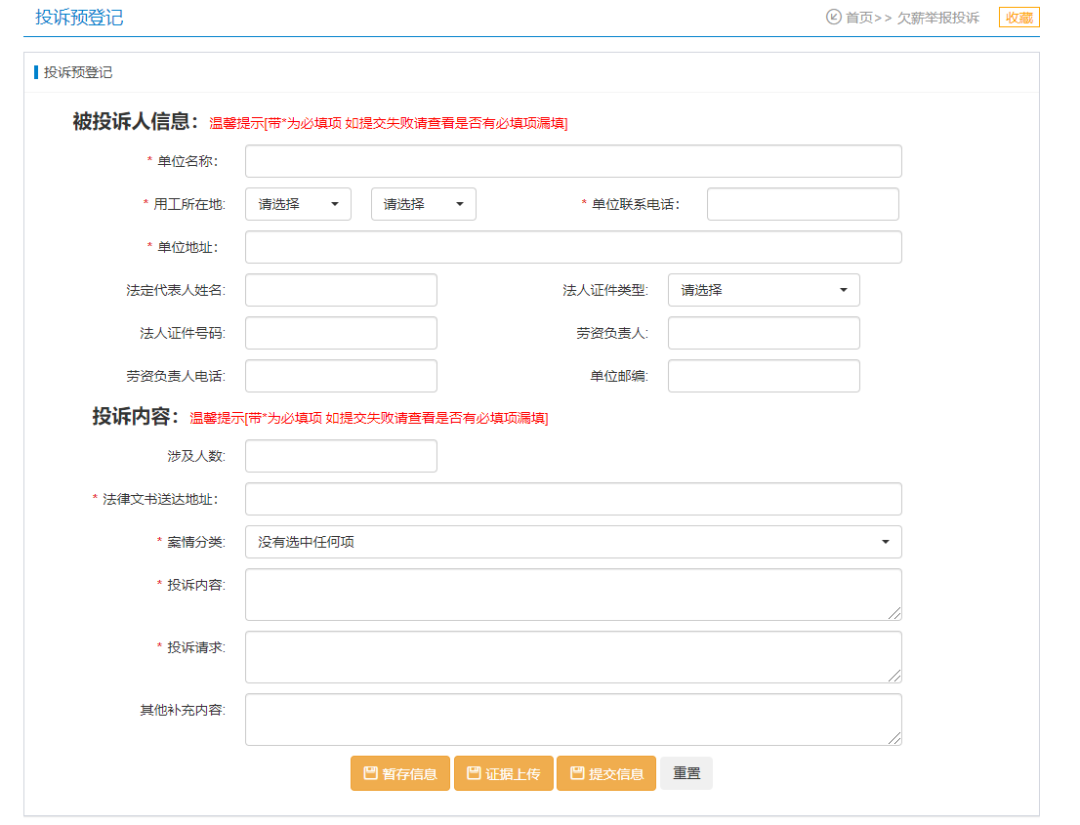 3、登录账号→按要求填写举报投诉信息内容保存提交。举报投诉提交成功后,省监察信息系统开始计算举报投诉受理时间。匿名举报不需注册。