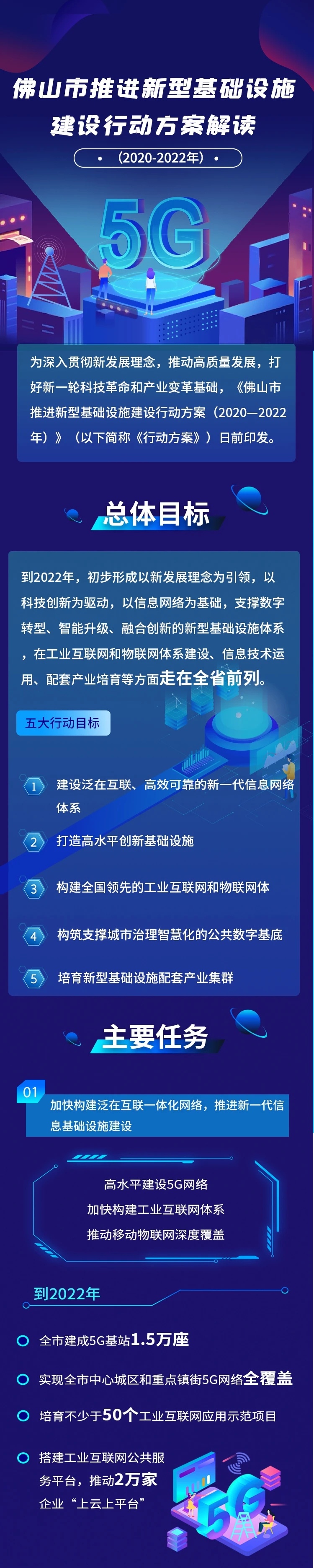 近日,《佛山市推进新型基础设施建设行动方案(2020—2022年)》(下称《方案》)正式印发,提出未来三年佛山发展“新基建”的五大目标、四大任务、十九项工作举措及四项保障措施。