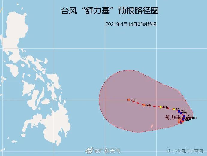据@广东天气 消息:今年第2号台风“舒力基”已于4月14日02时在菲律宾以东洋面上生成,中心附近最大风力8级(18米/秒,约65公里/小时)。