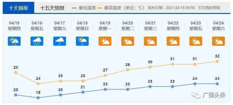 佛山气象台今日上午8时发布的天气预报,预计今明两天受切变线影响,佛山市转有明显雷雨天气,请注意防御。而局部雨势较大,记得带伞。