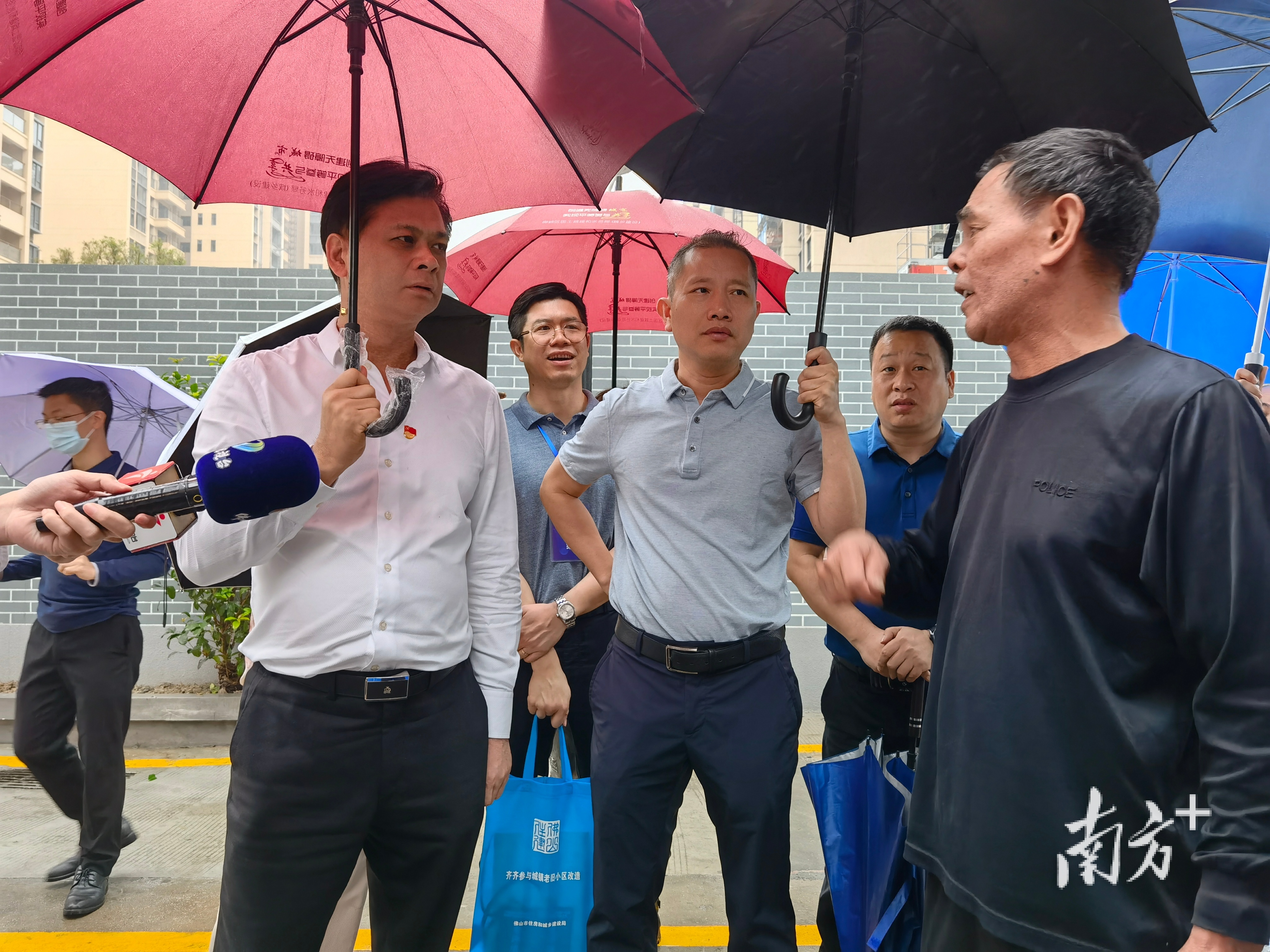 考评第一小组第一站来到位于禅城区石湾街道榴苑社区的榴苑四街老旧小区改造项目,该考评组由市住建局局长陈浩斌、副局长宗纪昌带领,考评通过听取汇报、查台账、现场考察核实等方式进行,对老旧小区改造项目前期工作、资金投入、开工建设和工程形象进度等进行考核。而在该小区内,据记者观察,小区公共道路及周围地面正在施工中,但基本完工,小区中心花园已经完工并投入使用。当天虽然下着毛毛细雨,但考评组人员手持雨伞边走边看,不时询问交流各自看法。
