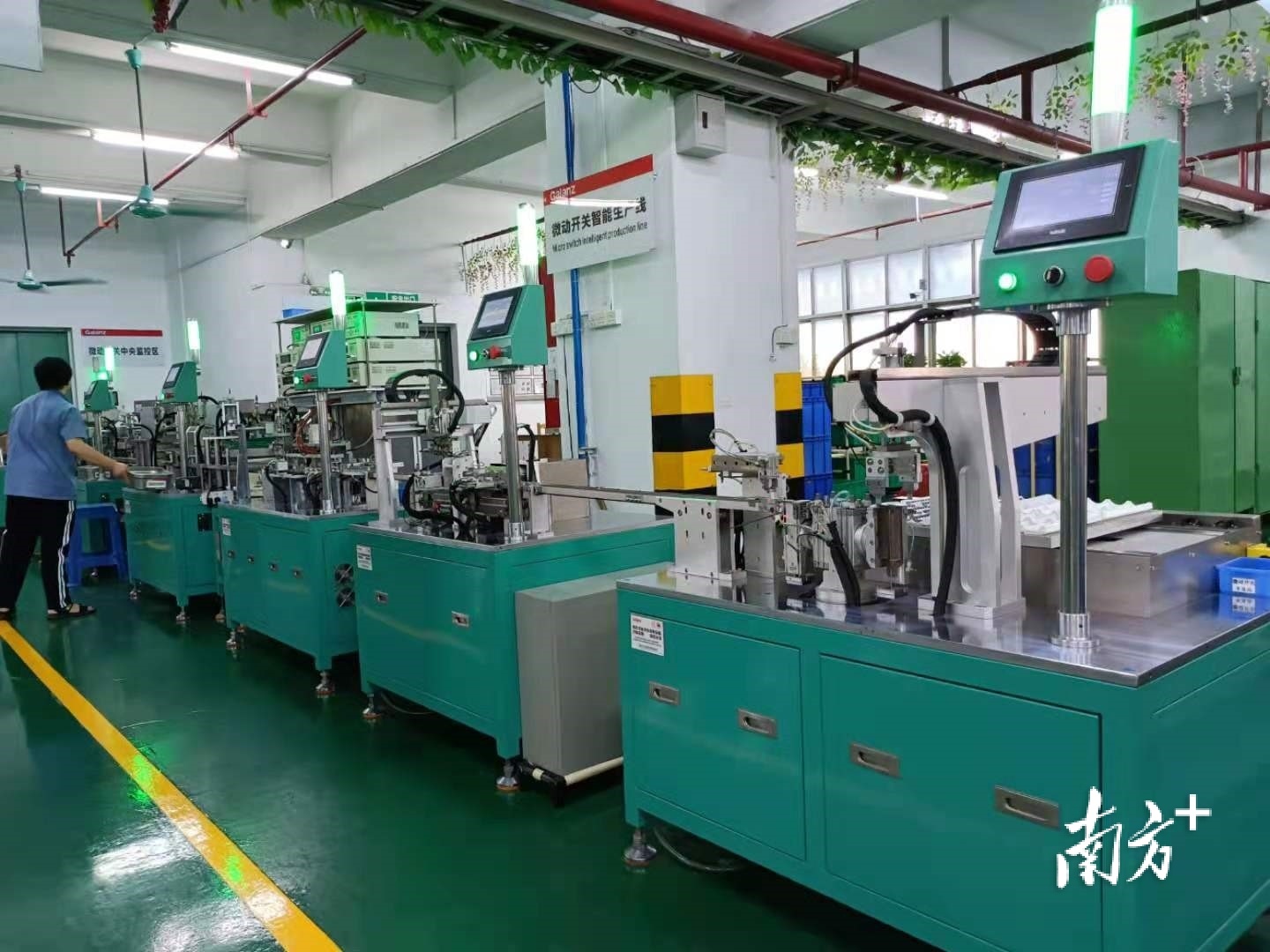 10年前,格兰仕前瞻性地提出了自动化升级的发展道路,至今格兰仕电器配件制造部已完成自主研发、改造并投产使用的各项非标自动化设备累计超520多台,总体工效提升200%以上。以微动开关为例,当前格兰仕已将该零配件的自动化生产线升级到了第四代,生产速率相比第三代提升了33%;采用了自动排除故障技术和多重故障检测,大幅降低员工劳动成本。