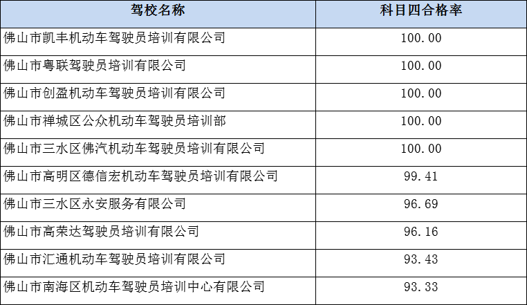 科目四合格率前十名: