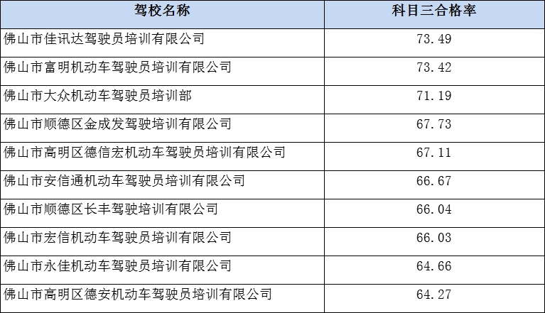 佛山全市驾考大数据近日公布,哪家驾校合格率高?哪些项目失分最多?