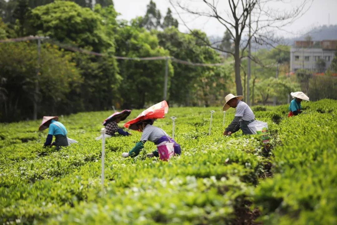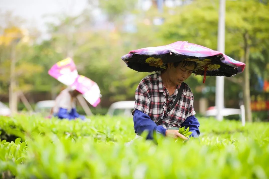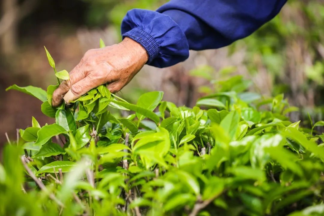 熟练的双手在绿叶间上下舞动,只为留住芽尖的香气。