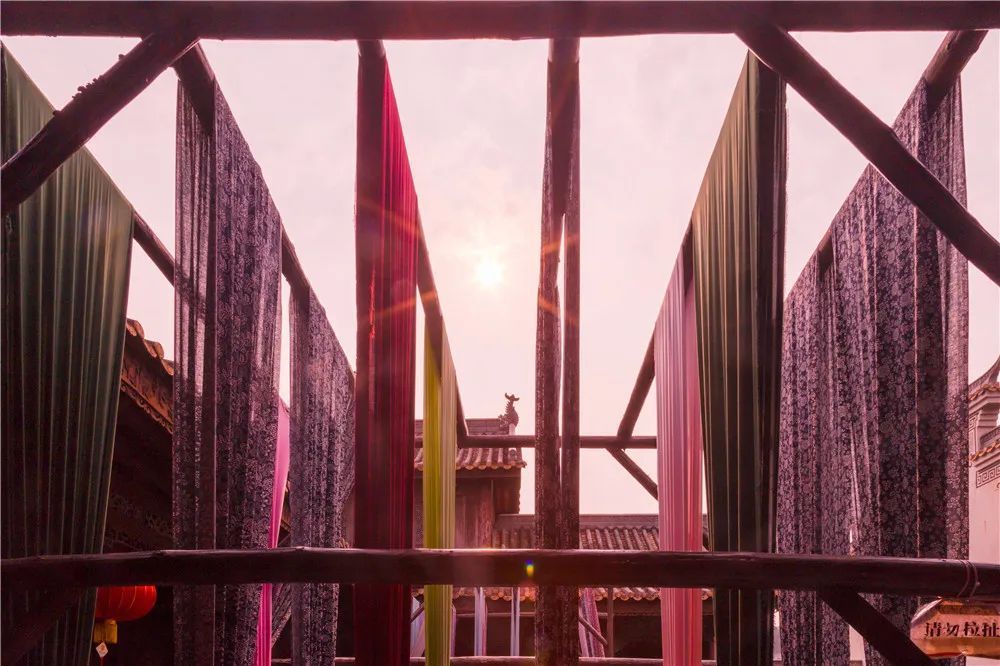 太阳从江南大宅内的染布探头,仿佛在跟你玩捉迷藏。