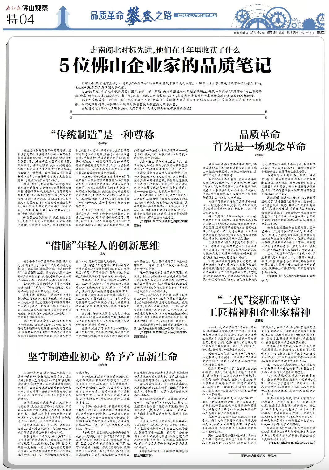 他们中有艰苦奋斗的“创一代”,也有接班不久的“企二代”;有深耕传统产业多年的制造业老兵,也有掘金新兴产业的企业家新秀。他们是缔造精品、推动佛山制造迈向高质量发展最重要的领导力量。