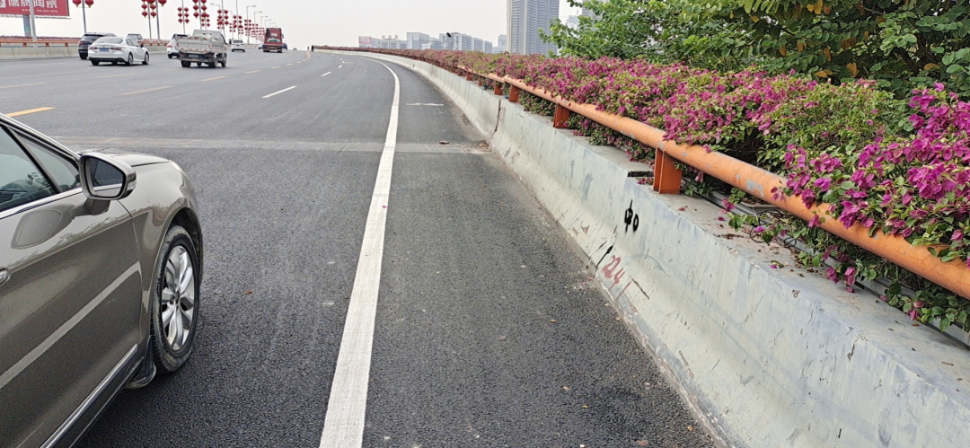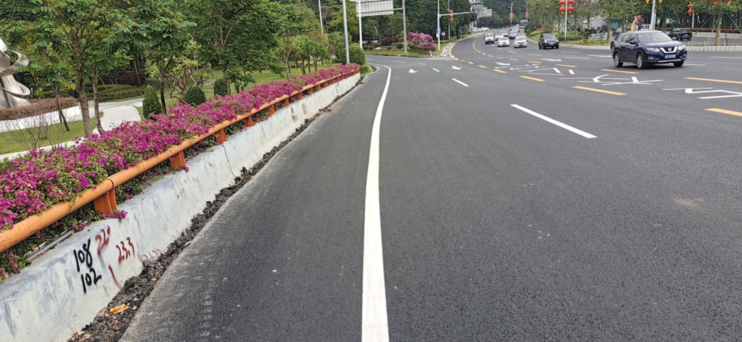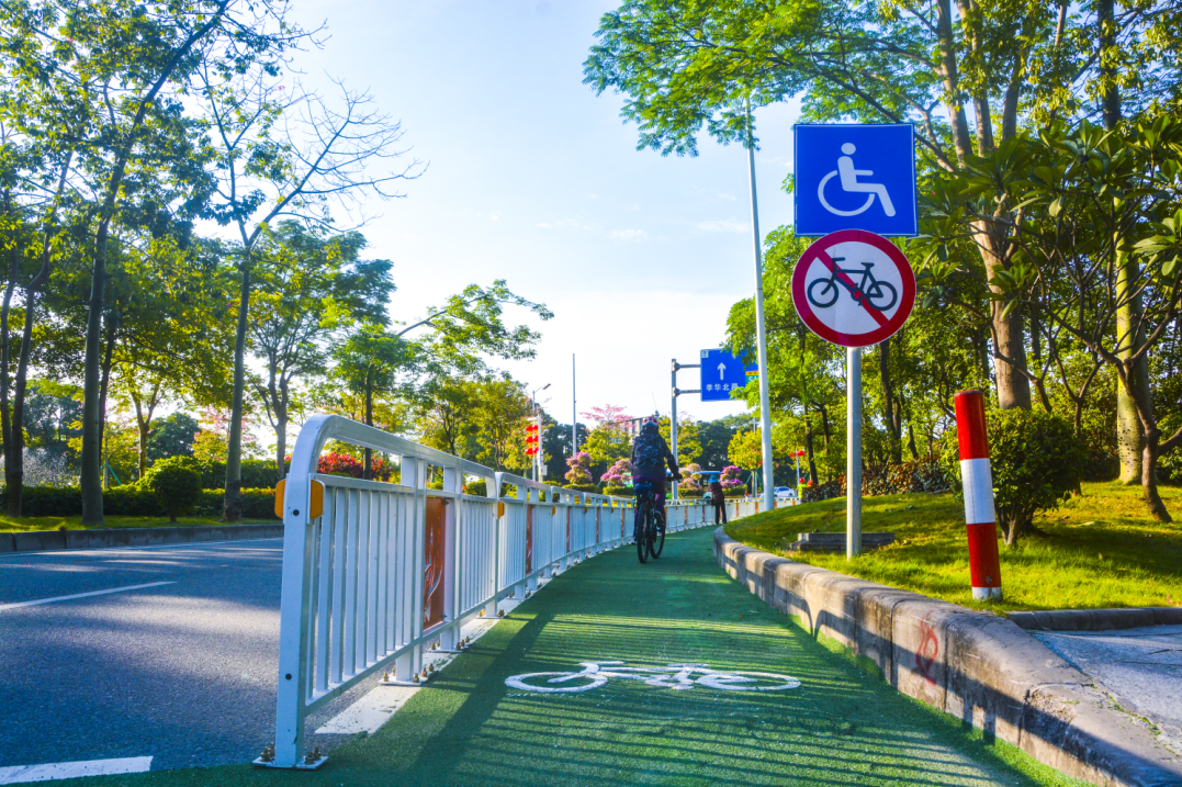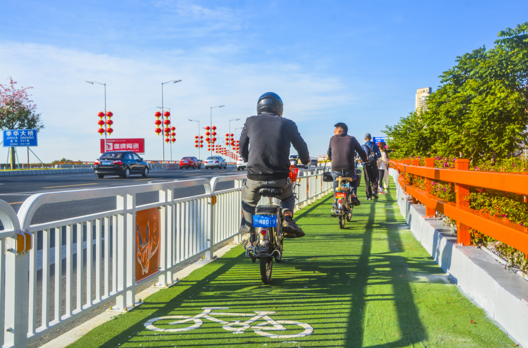 建成的自行车及电动自行车专用道宛如两条绿色丝带,镶嵌在季华大桥两侧,成为季华路又一道亮丽的风景线。