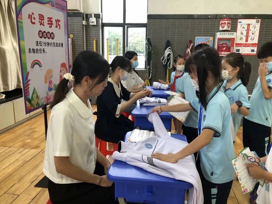 为了提高孩子的生活自理能力,南海中心小学综合实践学科设置了“整理小达人”大闯关——在1分钟内完成折叠衣物的任务。