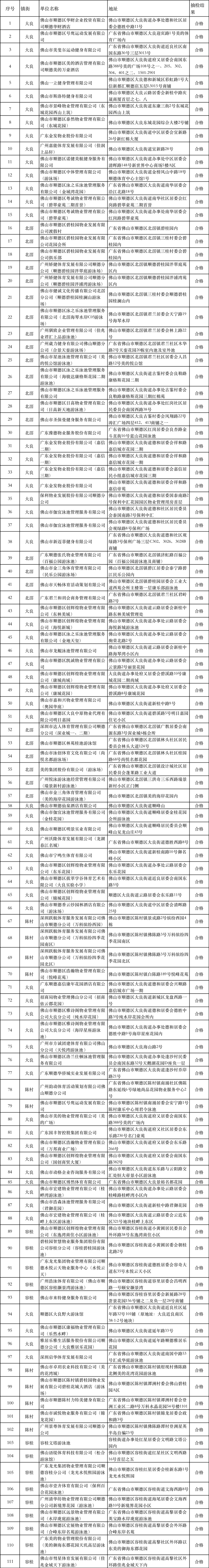 2022年顺德区第一批泳池水池抽检合格单位