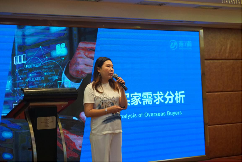 佛山市进出口商会副会长、佛山市对外数字贸易产业促进会副会长、广东浩小瀚展览有限公司总经理施春萍介绍主题:2022年下半年代参展重点展会推荐。