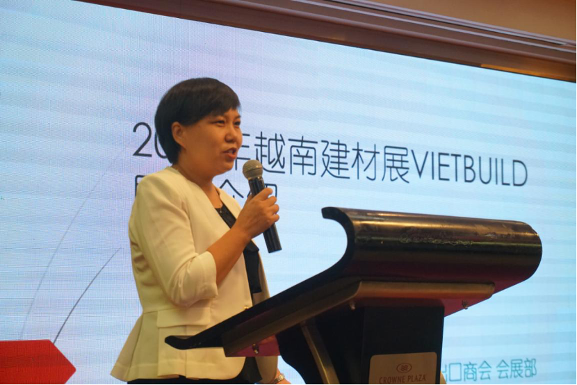 中国五矿化工进出口商会会展部副主任李海霞介绍主题:2022越南河内国际建材五金展。