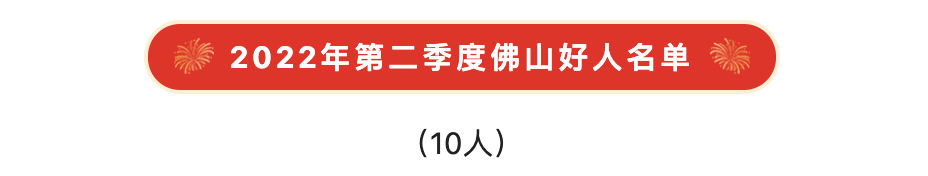 为培育和践行社会主义核心价值观,选树道德典型,弘扬传统美德,佛山市委宣传部、市文明办组织开展了2022年第二季度佛山市美德先进典型推荐宣传活动。经过各区各部门推荐、综合审核及网上公示等环节,决定推荐宣传刘伟雄等10人为2022年第二季度佛山好人,佛山市南海区大沥镇沙溪小学黎炫宏等3人为2022年第二季度佛山“新时代好少年”,邓佑财等2人为2022年第二季度佛山新乡贤,佛山市妇幼保健院儿童癫痫中心等2家单位为2022年第二季度佛山传播正能量致敬单位。