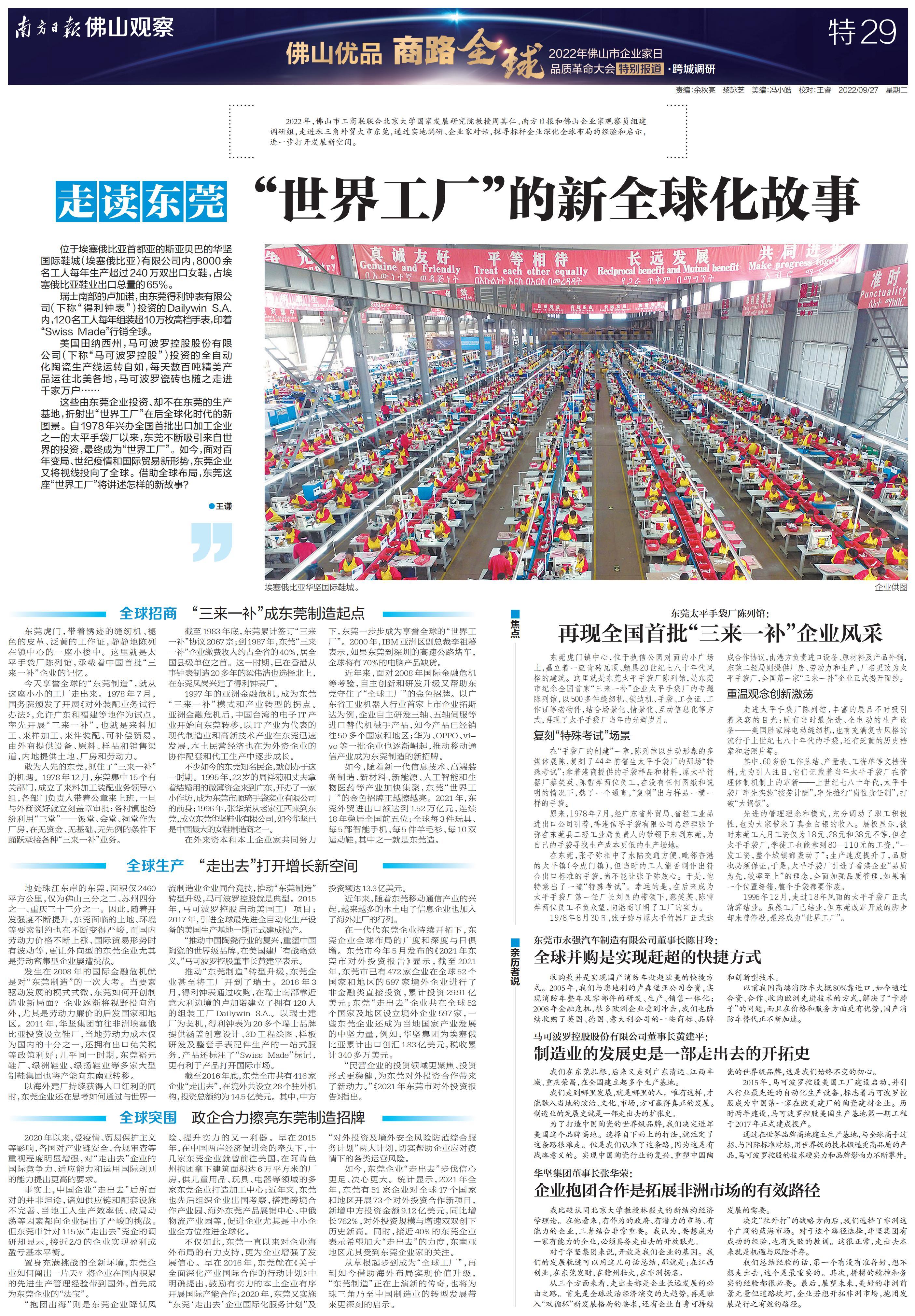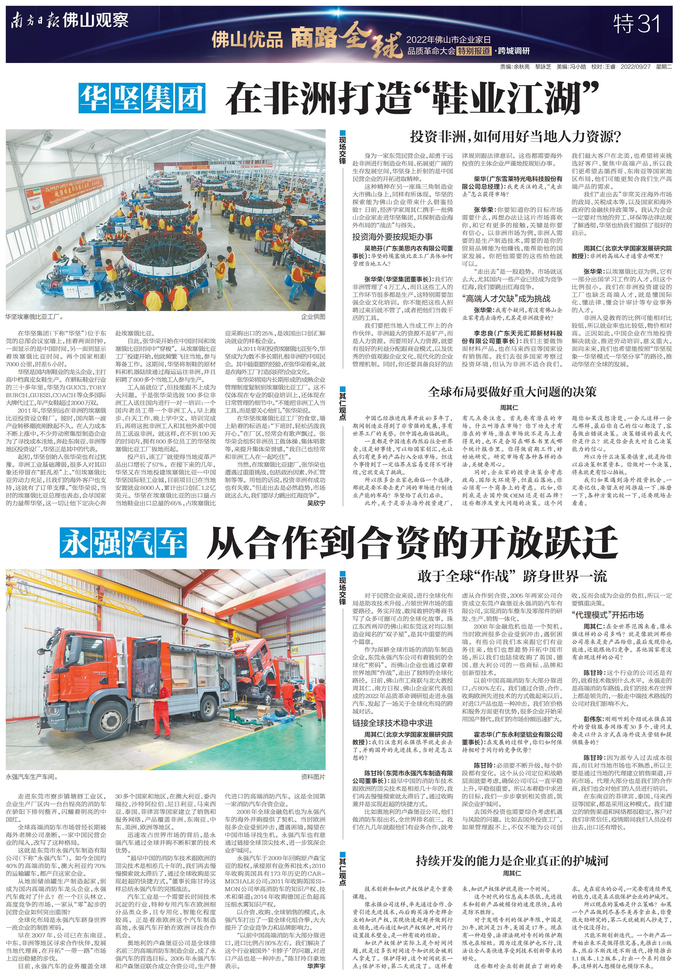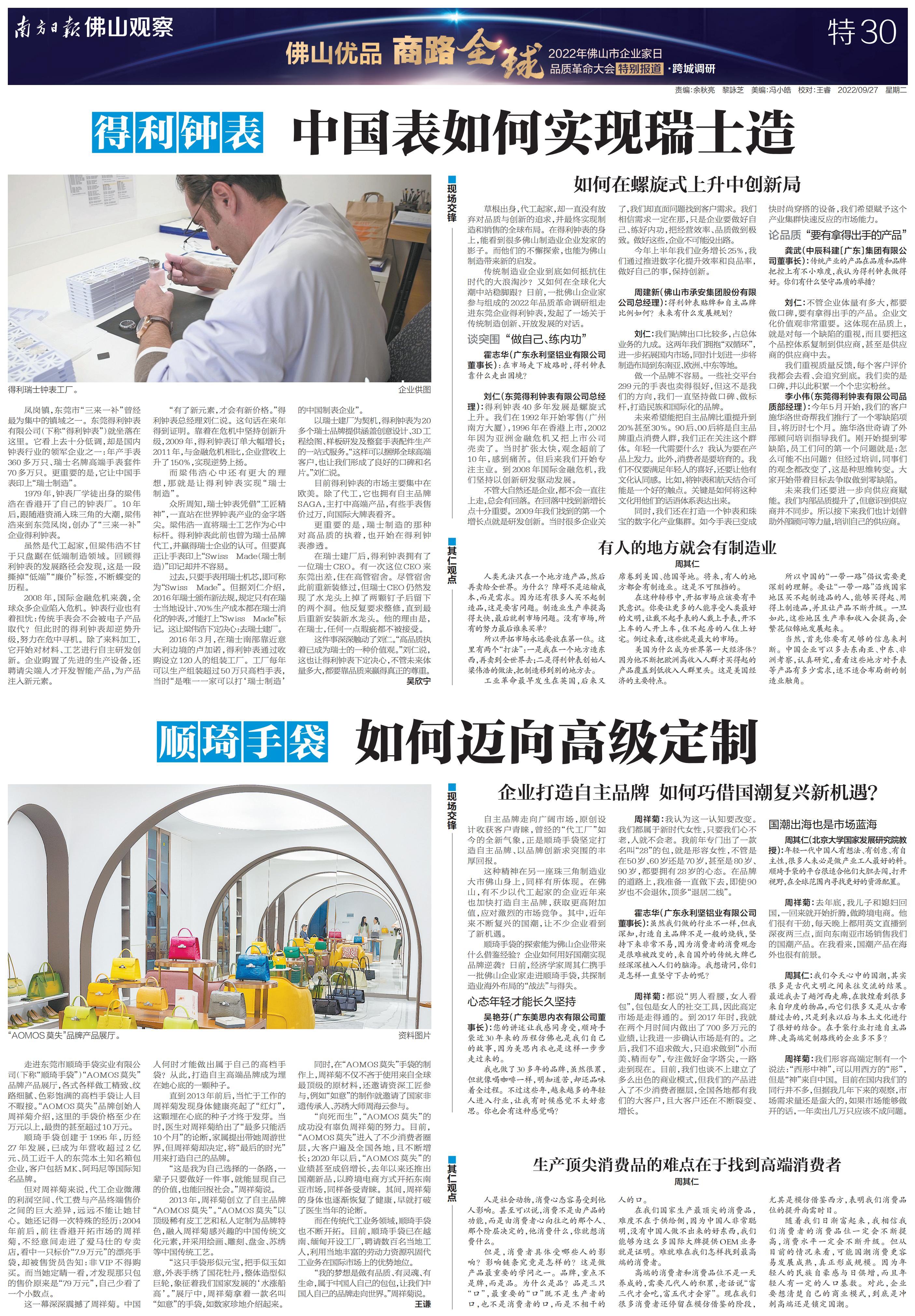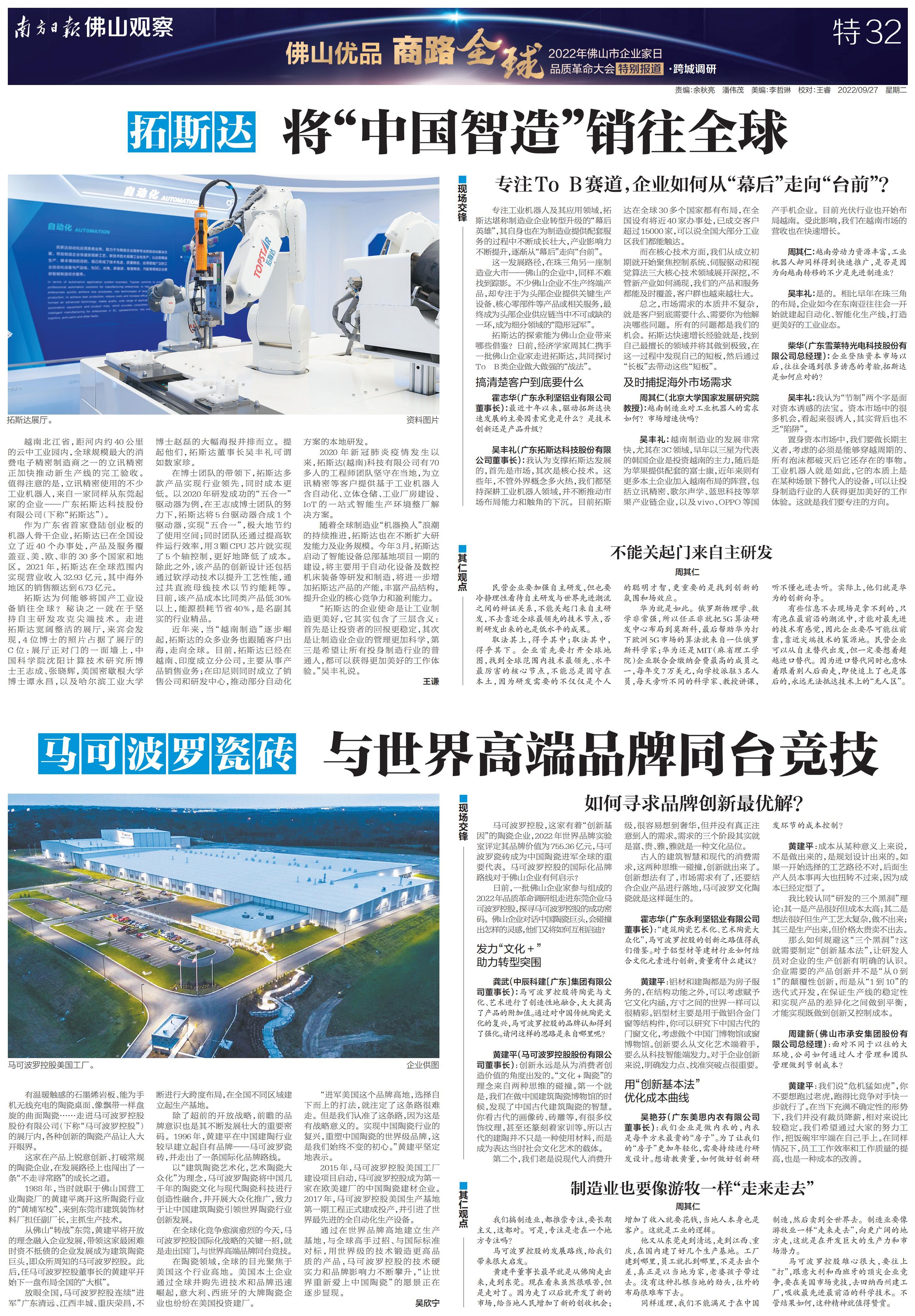 南方日报全程记录,并集结调研成果推出《“佛山优品 商路全球”2022年佛山市企业家日品质革命大会特别报道》特刊,立足佛山,为中国制造融入“双循环”新发展格局探索有效路径。以下为本次特刊全部36个版的报道。